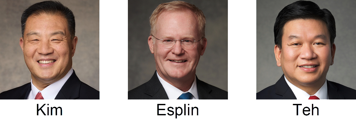 The Asia North Area Presidency for 2025–2026, from left to right: Elder Christopher H. Kim, First Counselor; Elder J. Kimo Esplin, President; and Elder Michael John U. Teh, Second Counselor.