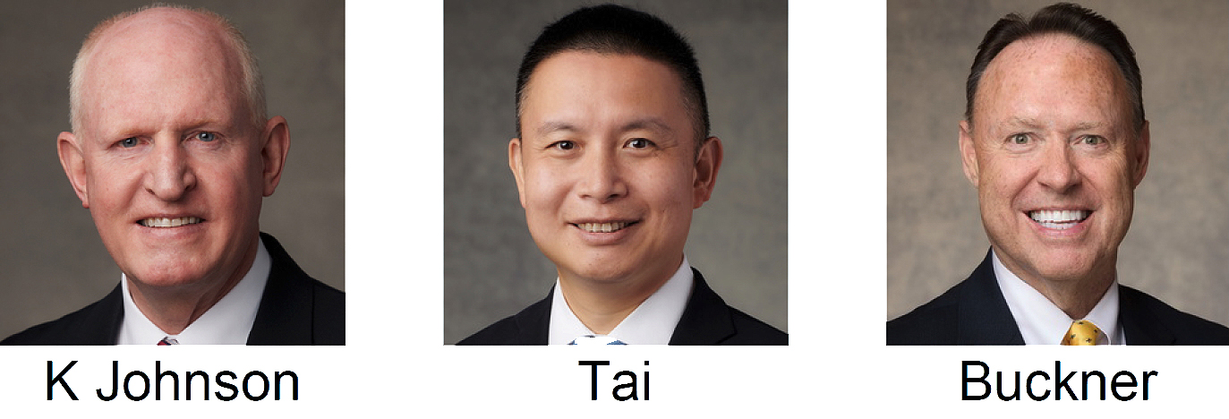 The Asia Area Presidency for 2025–2026, from left to right: Elder Kelly R. Johnson, First Counselor; Elder Benjamin M. Z. Tai, President; and Elder David L. Buckner, Second Counselor.