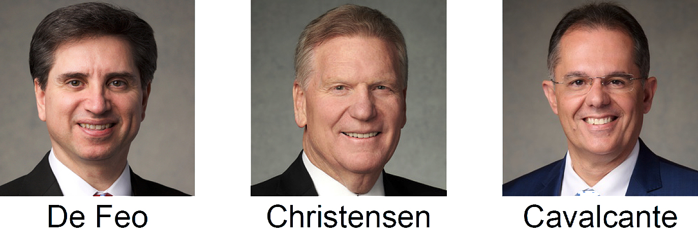 The United States Southeast Area Presidency for 2025–2026, from left to right: Elder Massimo De Feo, First Counselor; Elder Craig C. Christensen, President; and Elder Aroldo B. Cavalcante, Second Counselor.