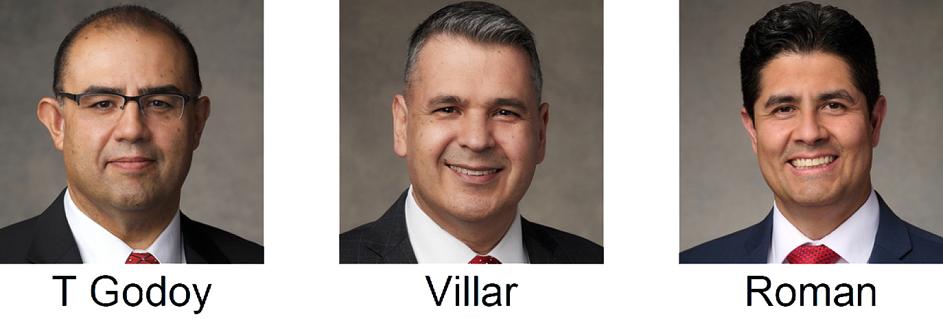 The South America Northwest Area Presidency for 2025–2026, from left to right: Elder Taylor G. Godoy, First Counselor; Elder Juan Pablo Villar, President; and Elder Sandino Roman, Second Counselor.