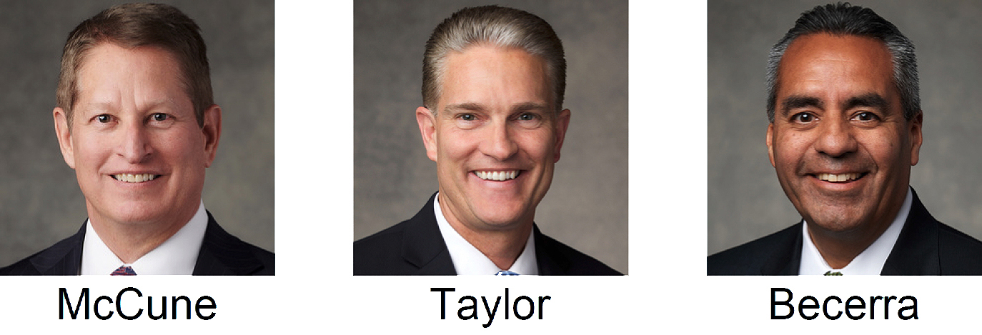 The Utah Area Presidency for 2025–2026, from left to right: Elder John A. McCune, First Counselor; Elder Brian K. Taylor, President; and Elder Jorge T. Becerra, Second Counselor.