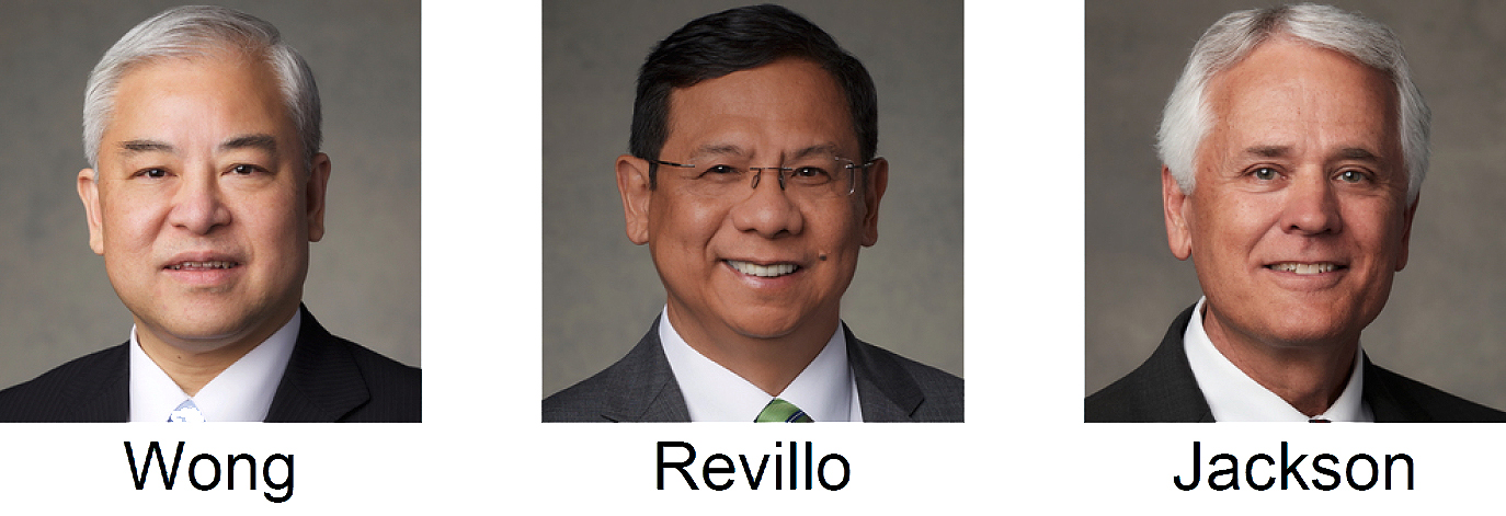 The Philippines Area Presidency for 2025–2026, from left to right: Elder Chi Hong (Sam) Wong, First Counselor; Elder Carlos G. Revillo Jr., President; and Elder William K. Jackson, Second Counselor.