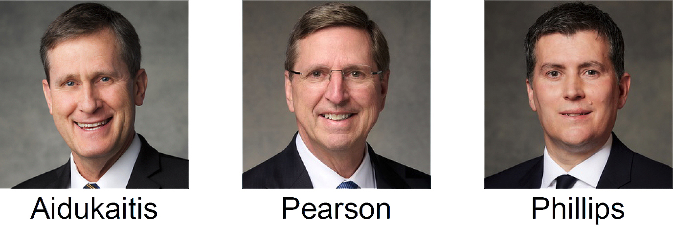 The Europe North Area Presidency for 2025–2026, from left to right: Elder Marcos A. Aidukaitis, First Counselor; Kevin W. Pearson, President; and Elder Alan T. Phillips, Second Counselor.