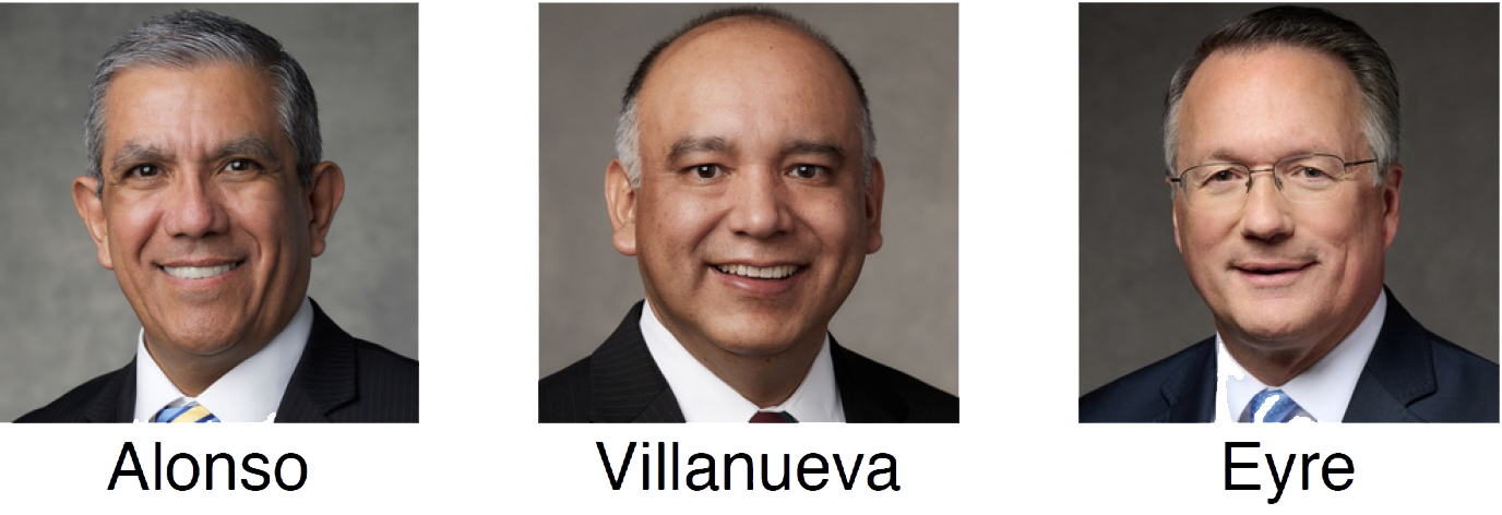 The Mexico Area Presidency for 2025–2026, from left to right: Elder Jose L. Alonso, First Counselor; Elder Moisés Villanueva, President; and Elder Brik V. Eyre, Second Counselor.