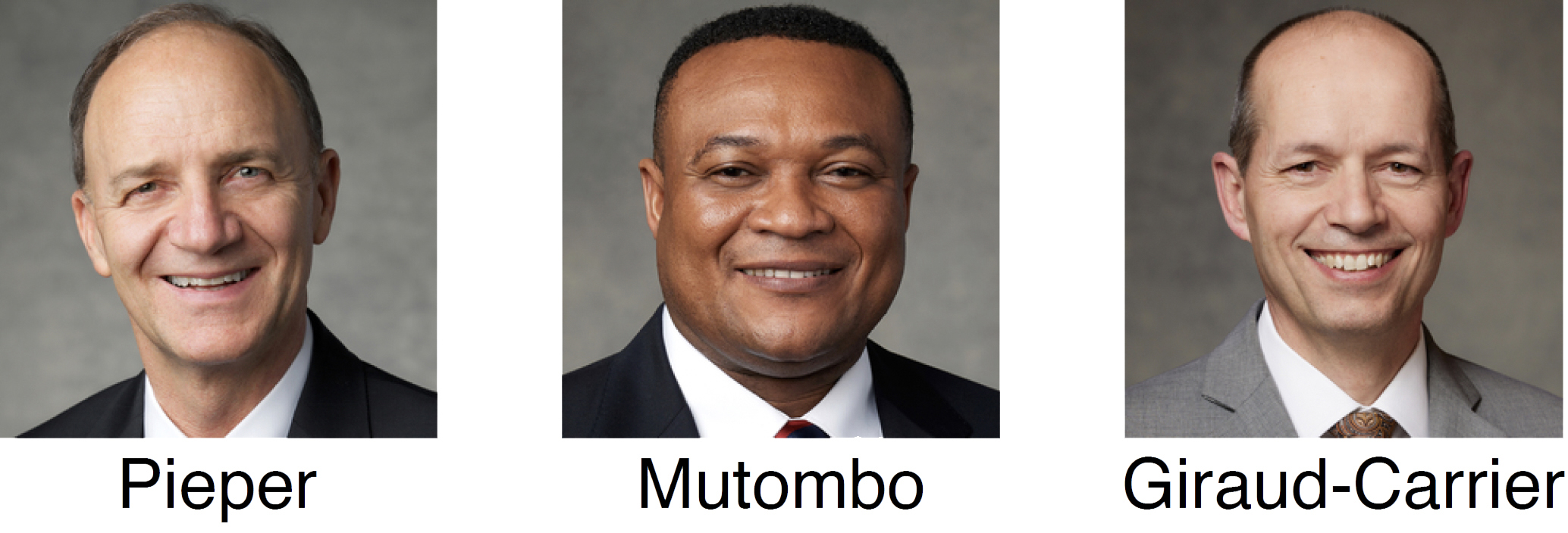 The Africa Central Area Presidency for 2025–2026, from left to right: Elder Paul B. Pieper, First Counselor; Elder Thierry K. Mutombo, President; and Elder Christophe G. Giraud-Carrier, Second Counselor.