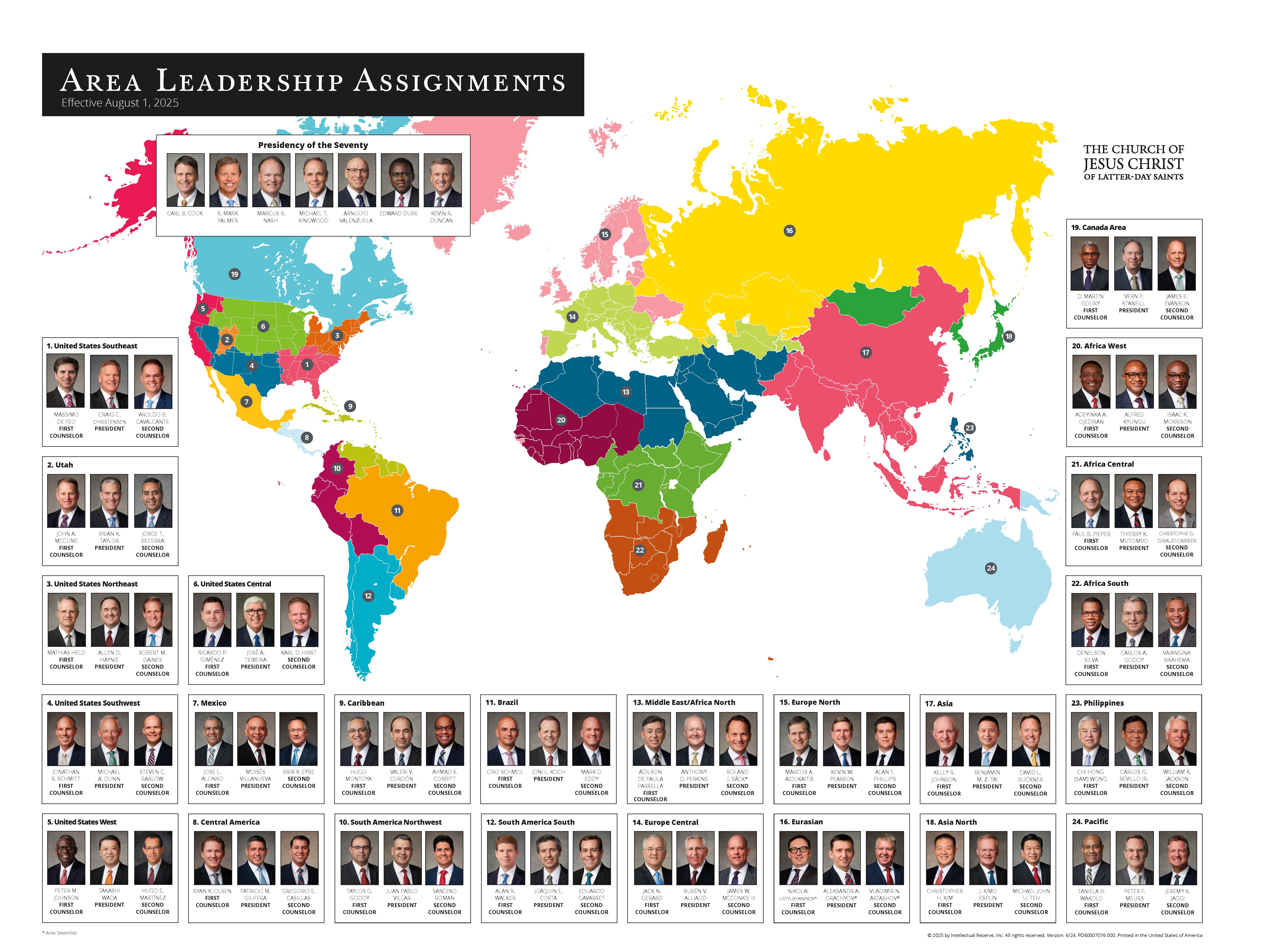 The assignments below affect the Presidency of the Seventy and area presidencies and become effective on August 1, 2025.
