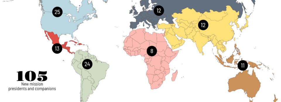 The First Presidency has called 105 new mission presidents and companions. Their service will begin in July. Graphic courtesy of Church News.Copyright 2021 Deseret News Publishing Company