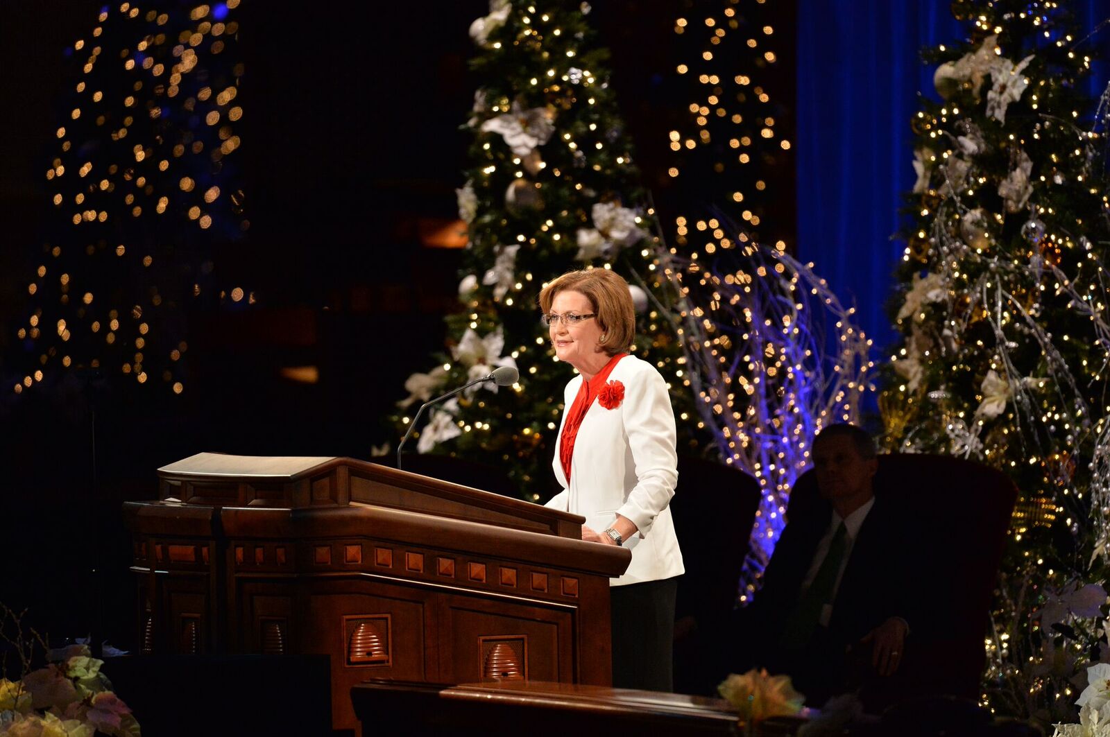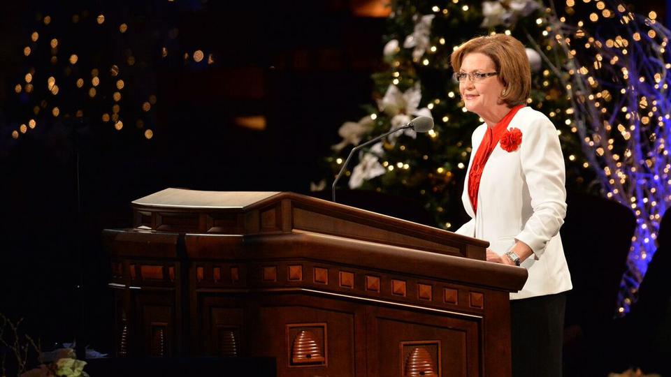 Sister Linda K. Burton, general president of the Relief Society, shared Christmas memories about her family, including stories of when she was living in New Zealand as a teenager and her grandfather in Utah passed away. “Although I mourned his loss, I was blessed and comforted in my knowledge of the glorious plan of happiness,” said Sister Burton.