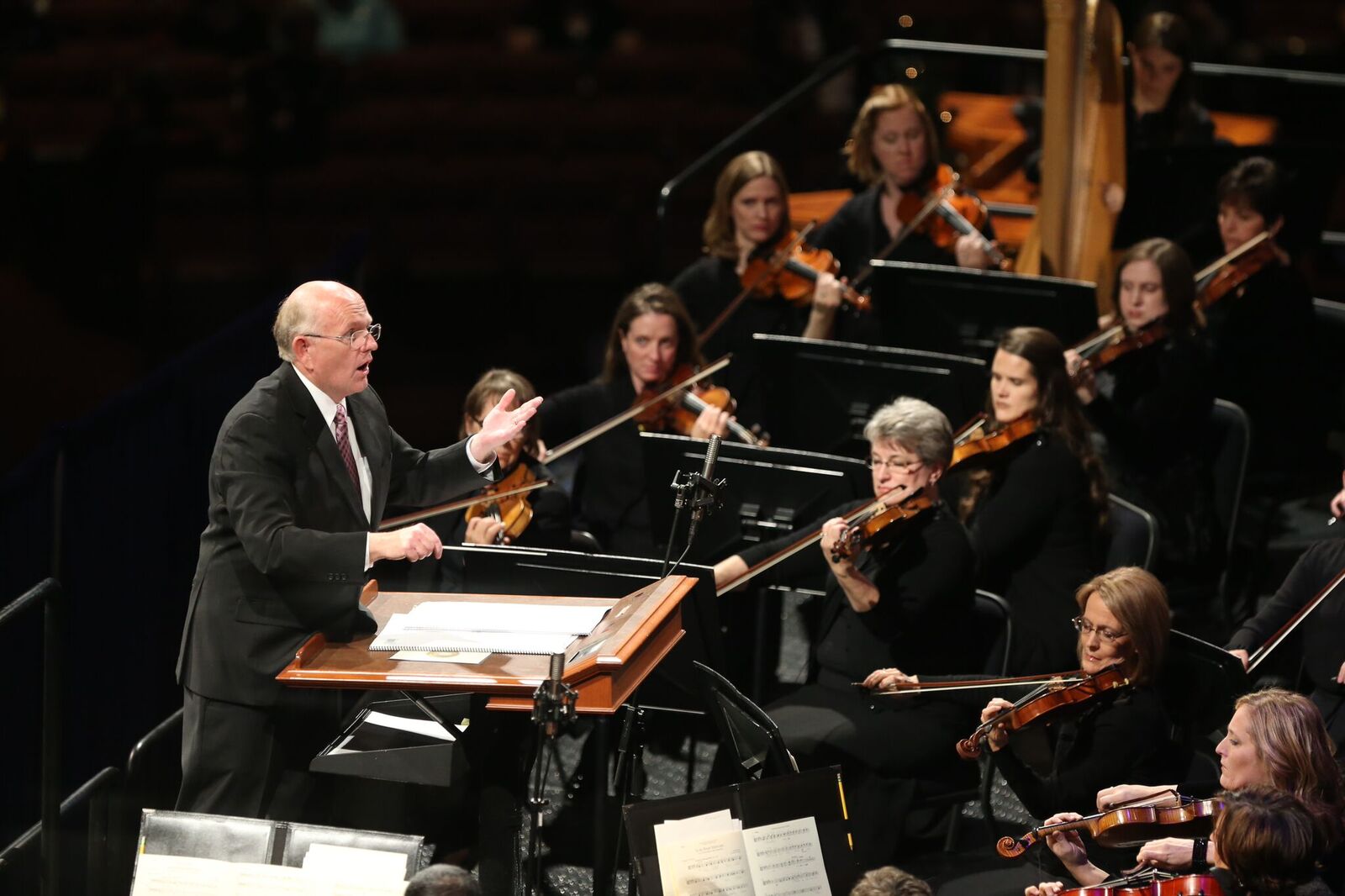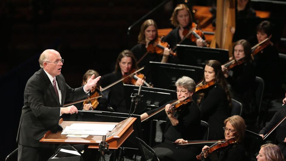 President Henry B. Eyring of the First Presidency conducted the devotional. Music was provided by the Mormon Tabernacle Choir and Orchestra at Temple Square. Songs performed by the choir and orchestra included "For unto Us a Child Is Born," "Noe! Noe!," "In the Bleak Midwinter," "Carol of the Bells." The congregation joined the Choir in singing the last verse of "Silent Night" as the concluding song.