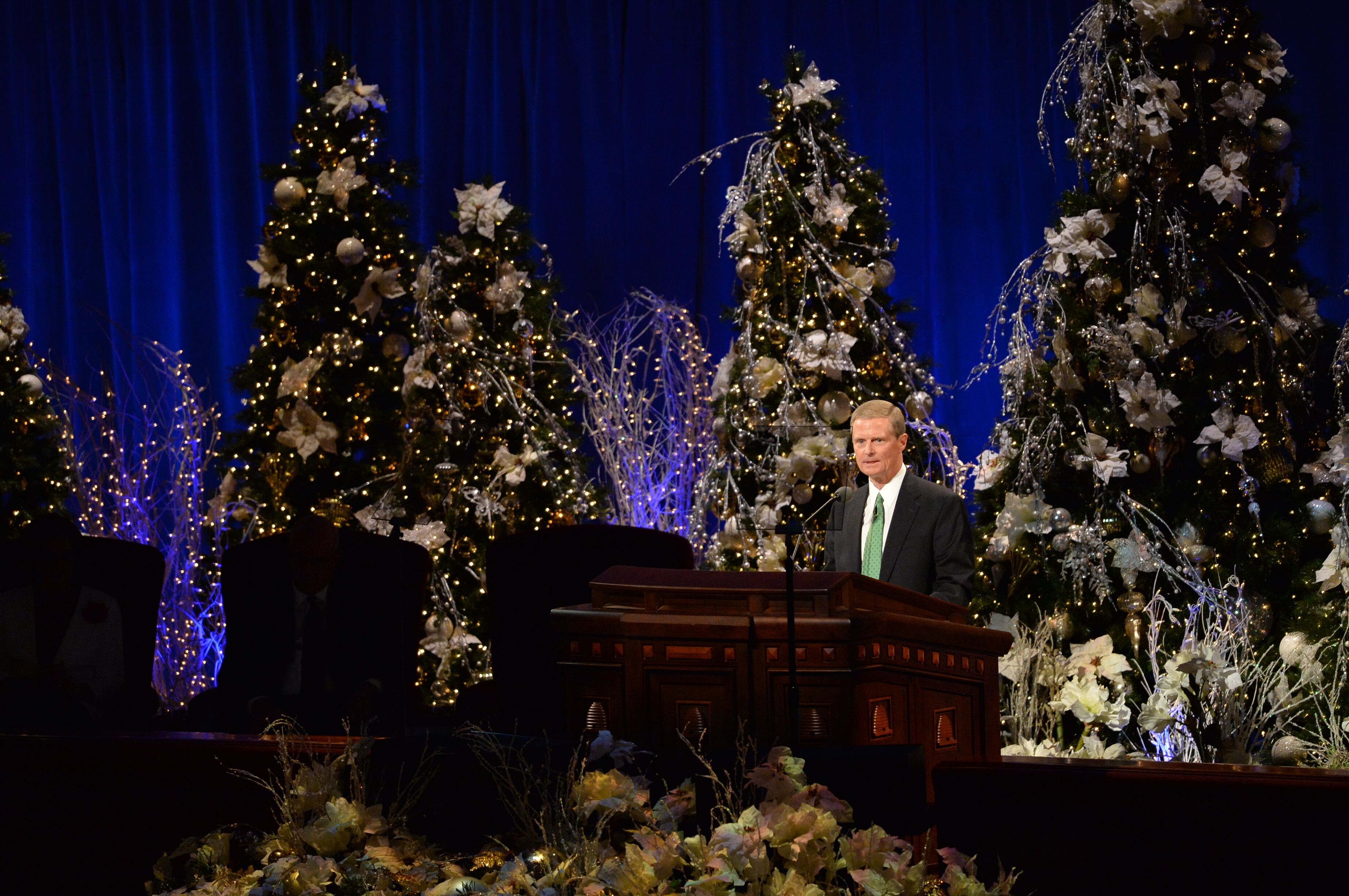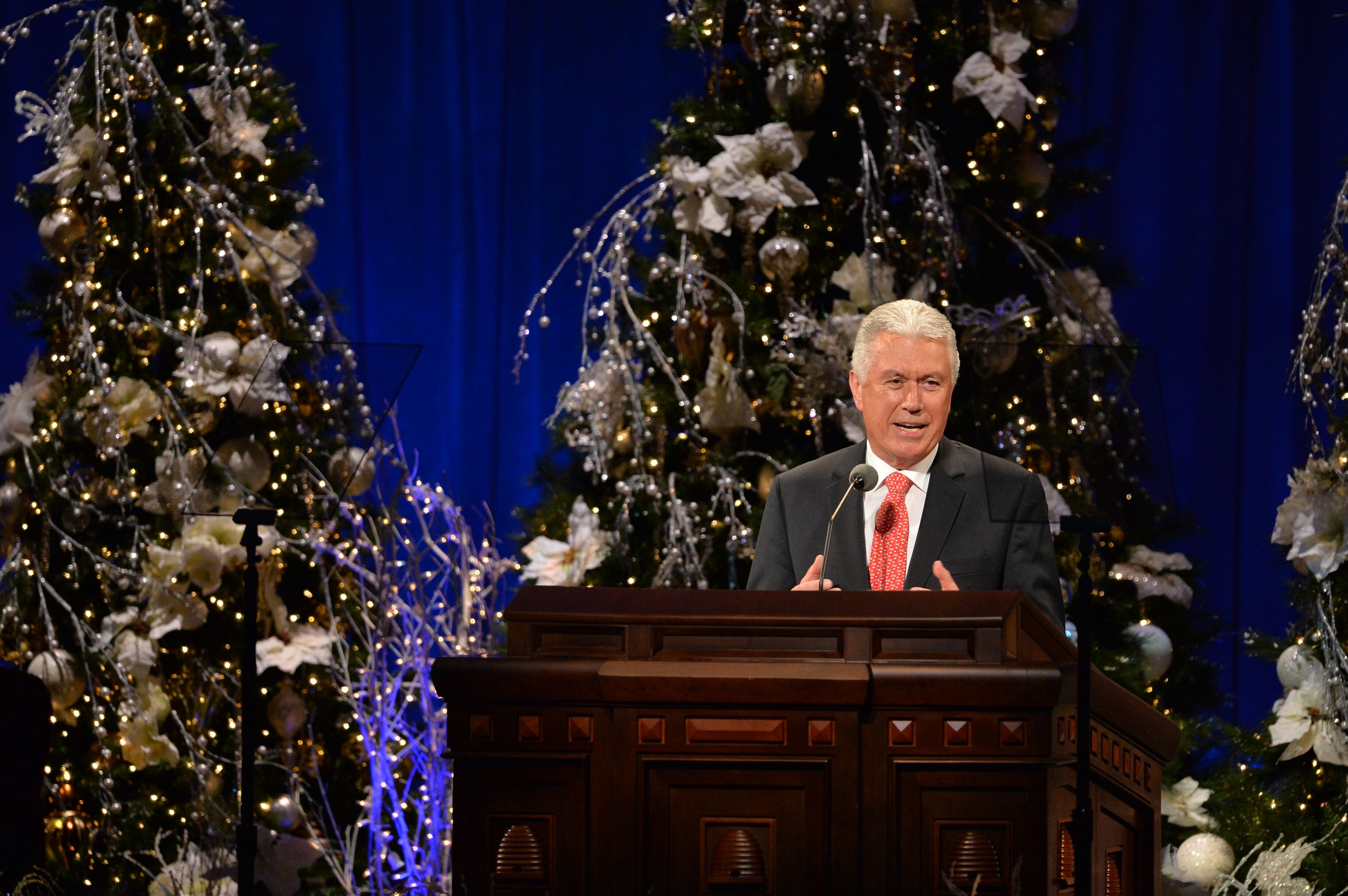 “Christmas is that rarest of seasons — when we see others with new eyes, when we open our hearts a little more to the beauty around us, and reach out to others with a little more kindness and compassion,” said President Dieter F. Uchtdorf of the First Presidency of The Church of Jesus Christ of Latter-day Saints at the First Presidency’s Christmas Devotional. Thousands of people gathered for the annual event in the Conference Center on Temple Square in Salt Lake City on Sunday, December 6, 2015. Many others watched the live broadcast on LDS.org, the Mormon Channel, BYUtv and in local meetinghouses.
