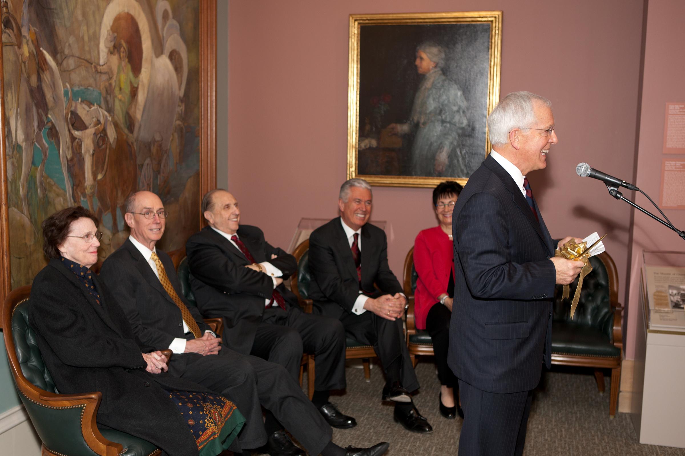 The First Presidency of The Church of Jesus Christ of Latter-day Saints got a look at some of the best in Mormon art Thursday, 10 March at the Church History Museum in downtown Salt Lake City.