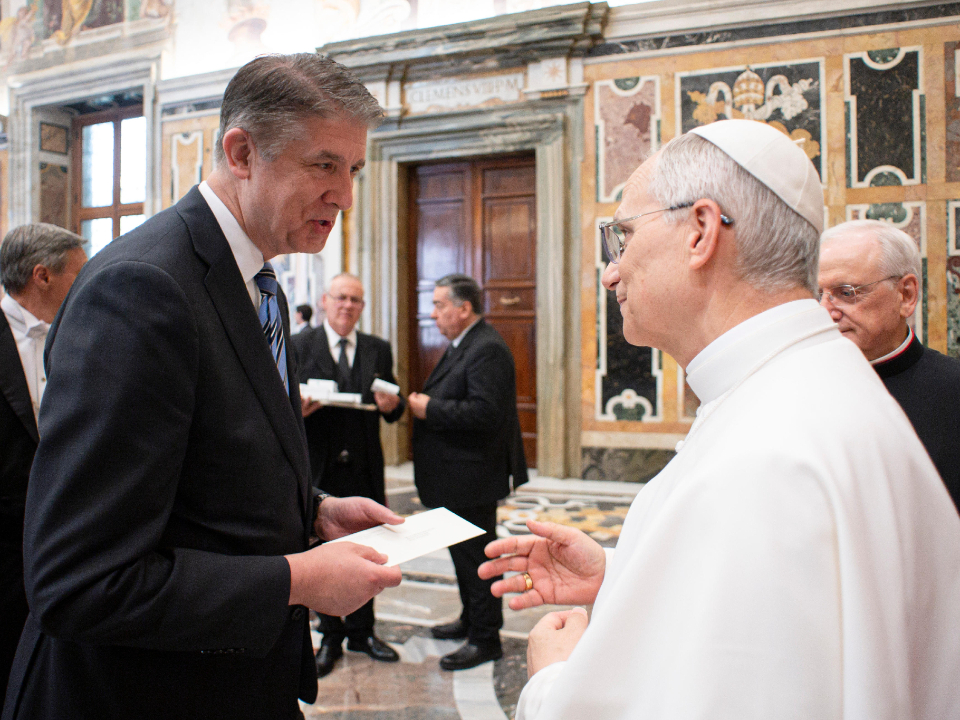 Elder Holland joined other global faith representatives for a private audience with Pope Leo on Monday. In association with these and other events, Elder Holland presented a congratulatory letter from the First Presidency. The text of that letter can be found below.