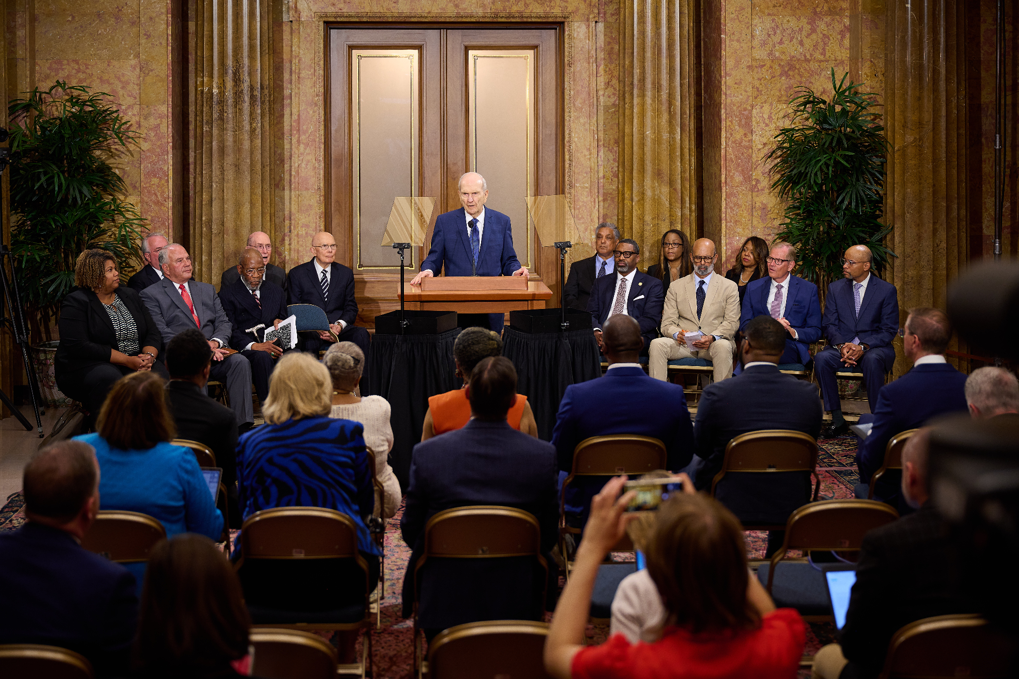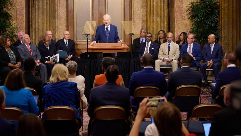 “Today, we are pleased to announce three key initiatives that have emerged from our many discussions and prayerful planning,” said President Russell M. Nelson at a news conference, shortly after meeting with NAACP leadership in the Church Administration Building on Temple Square in Salt Lake City.