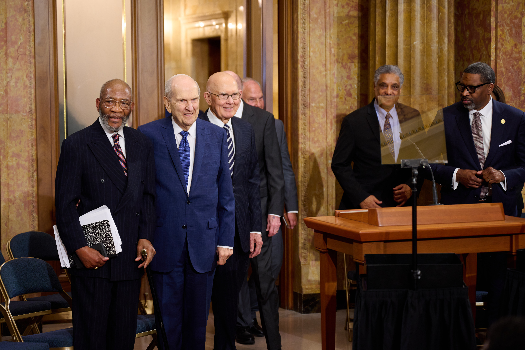 “Leaders of the Church have found common ground with the NAACP as we have discussed challenges that beset some of God’s children,” said President Nelson, who was accompanied by his counselors, President Dallin H. Oaks and President Henry B. Eyring; Elders Ronald A. Rasband and Gary E. Stevenson of the Quorum of the Twelve Apostles; and Elder Jack N. Gerard, a General Authority Seventy.