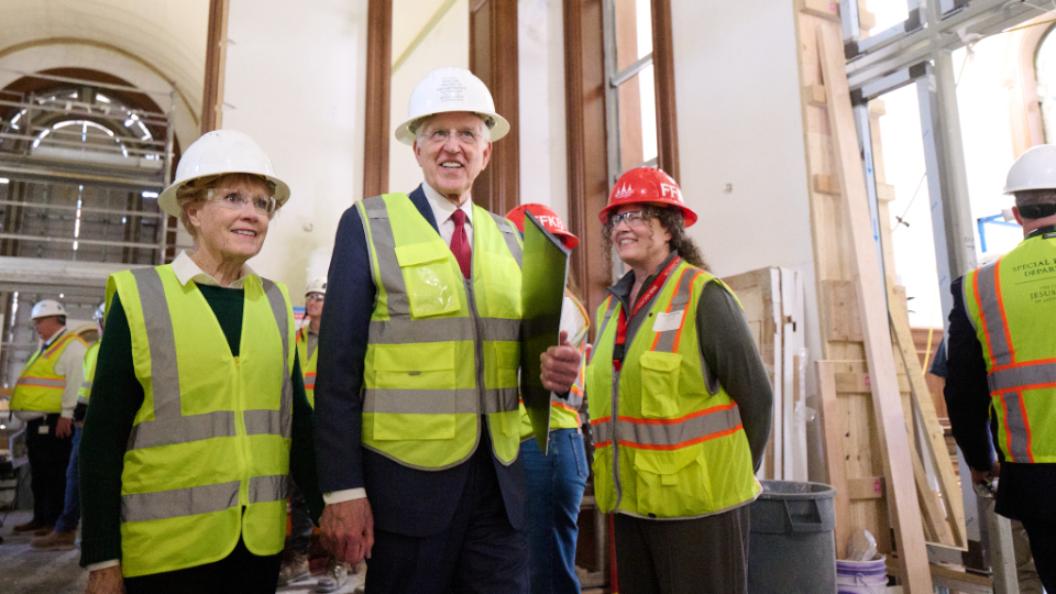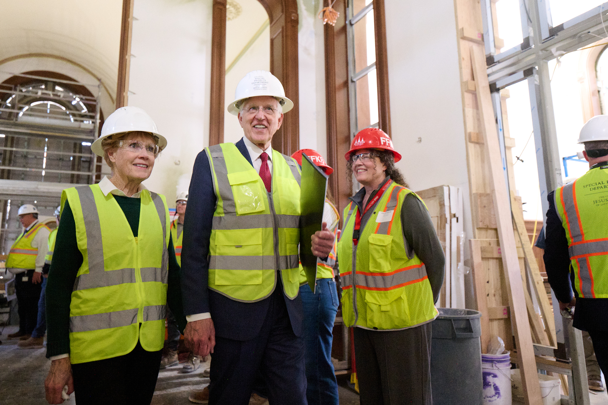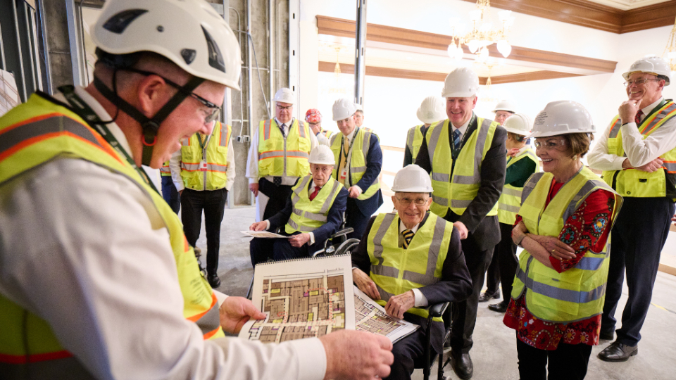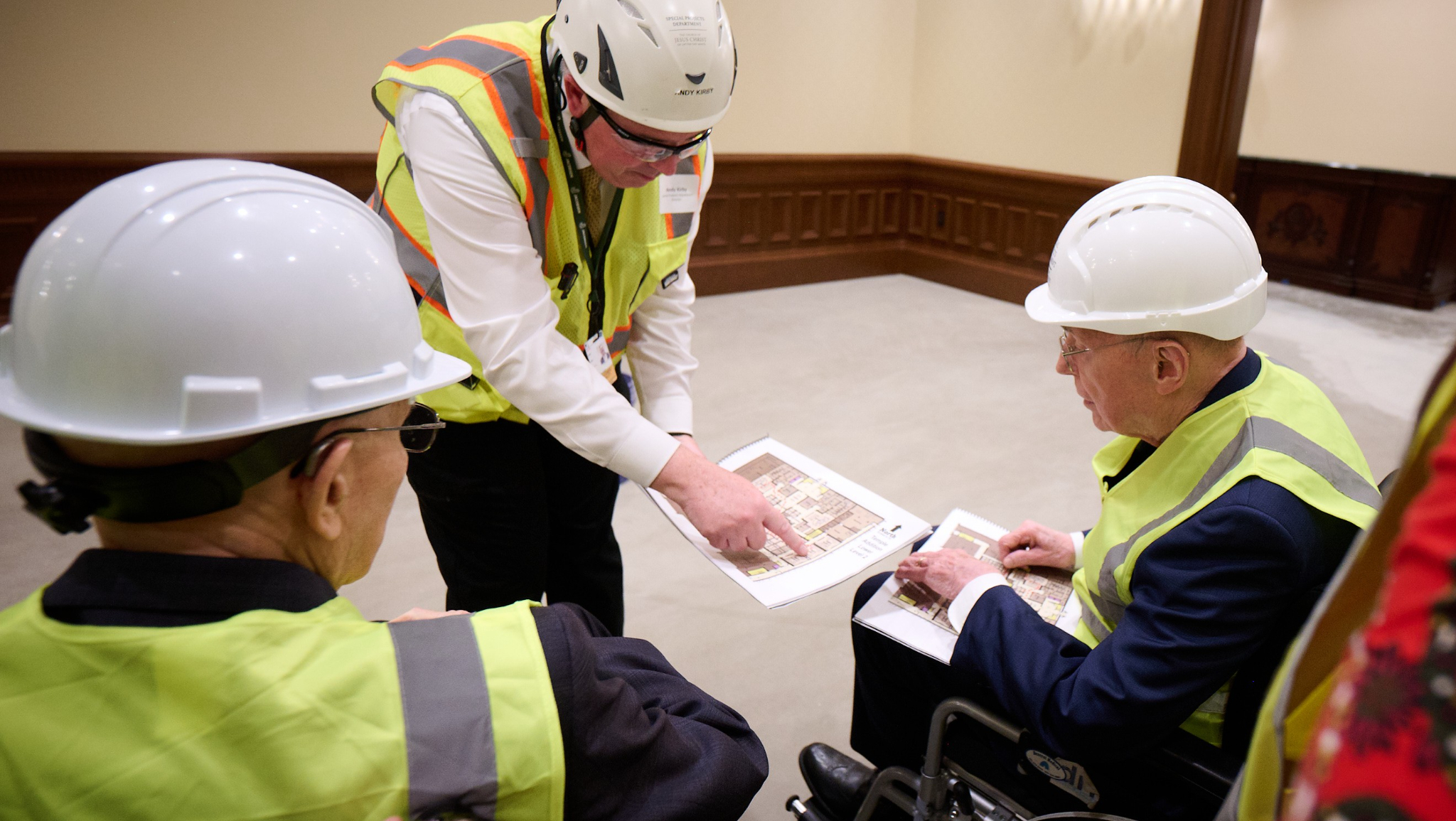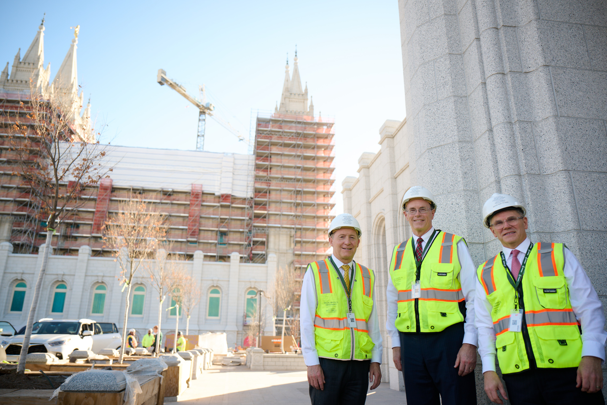 The Church leaders, who have been closely involved throughout the project, toured the site as construction enters its final phase, visiting spaces such as one of two baptistries, the marriage-sealing rooms and other rooms used for sacred ceremonies.