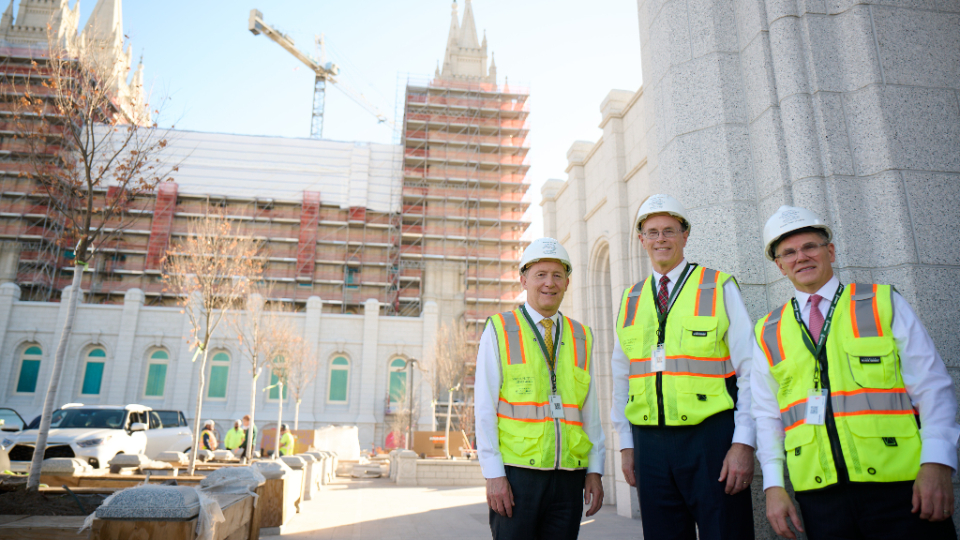 The First Presidency and the Presiding Bishopric of The Church of Jesus Christ of Latter-day Saints toured the historic Salt Lake Temple on Friday, December 12, 2025, amid ongoing renovation work.