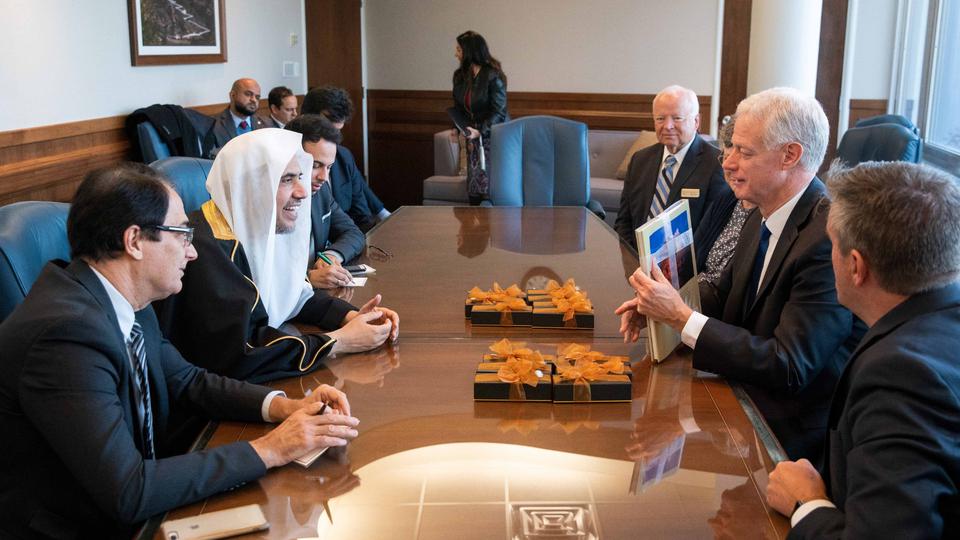 After his conversation with the First Presidency, Dr. Al-Issa visited with Elder David A. Bednar of the Quorum of the Twelve Apostles and toured Welfare Square.