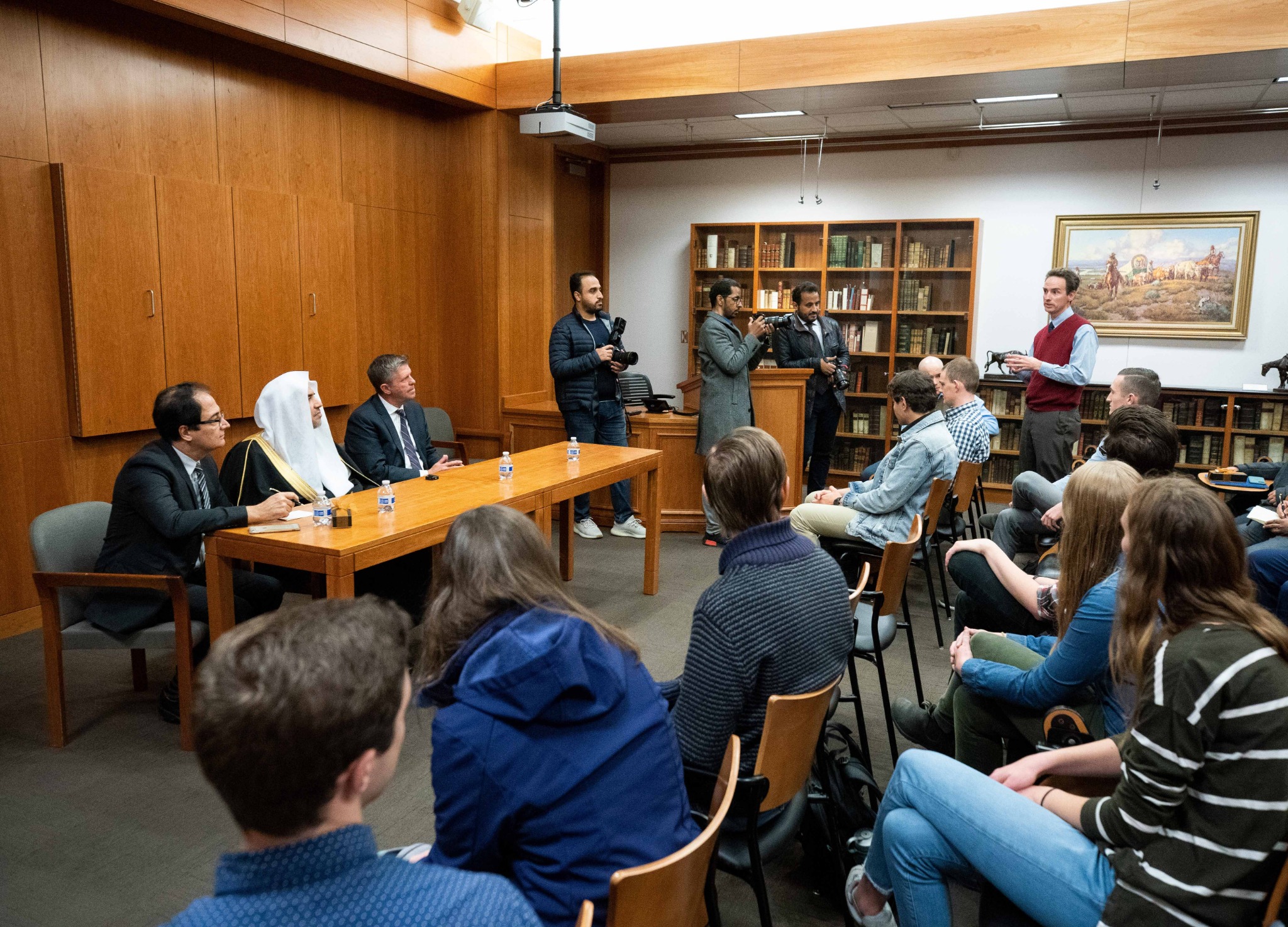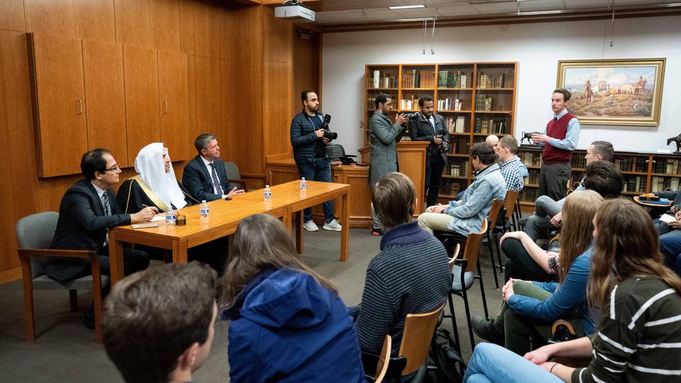 The First Presidency gave Dr. Al-Issa a medallion and a copy of “The Niche of Lights,” an ancient text by 11th century Islamic thinker Abu Hamid Muhammad al-Ghazali. The book is part of the Islamic Translation Series published by Brigham Young University Press.