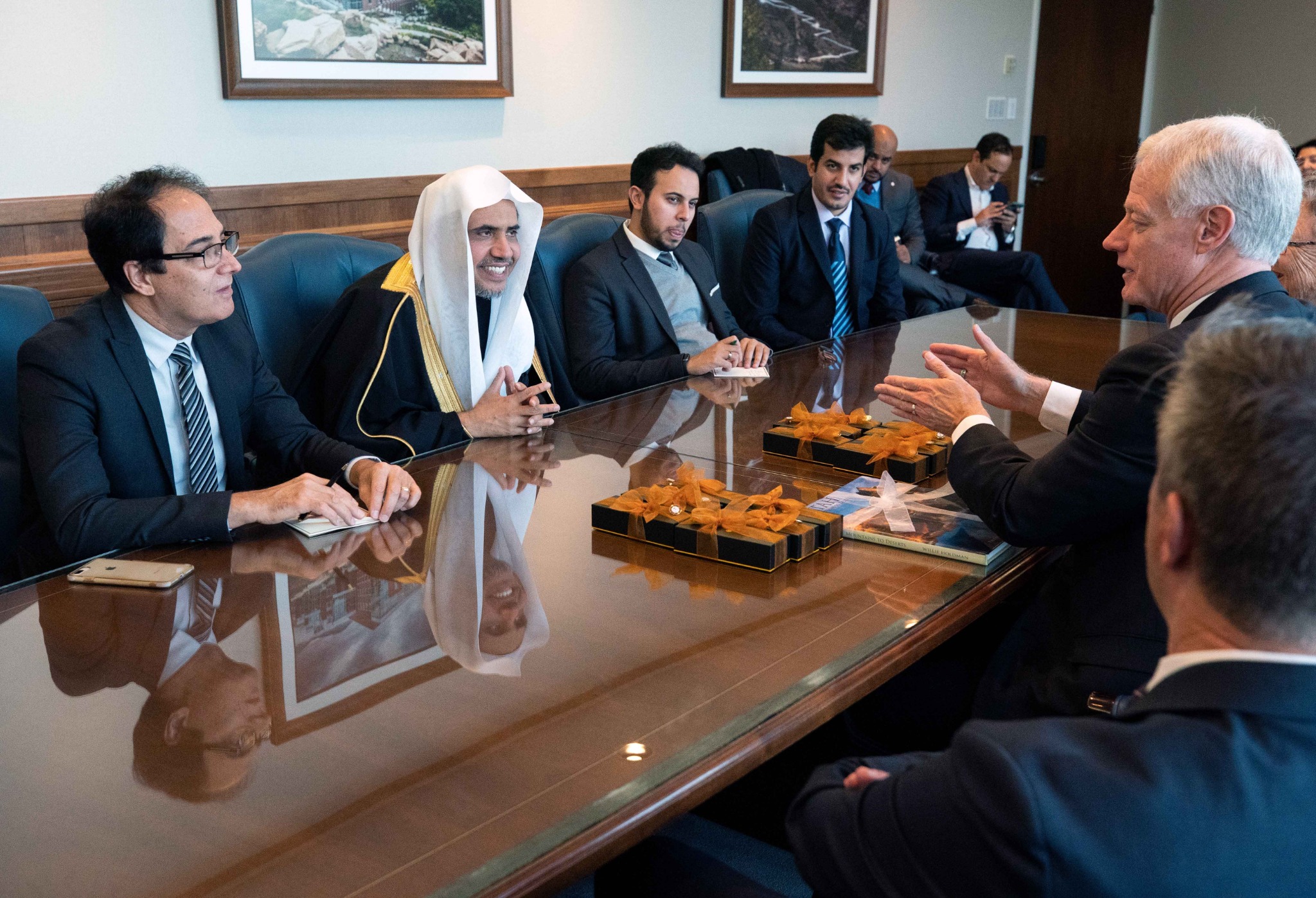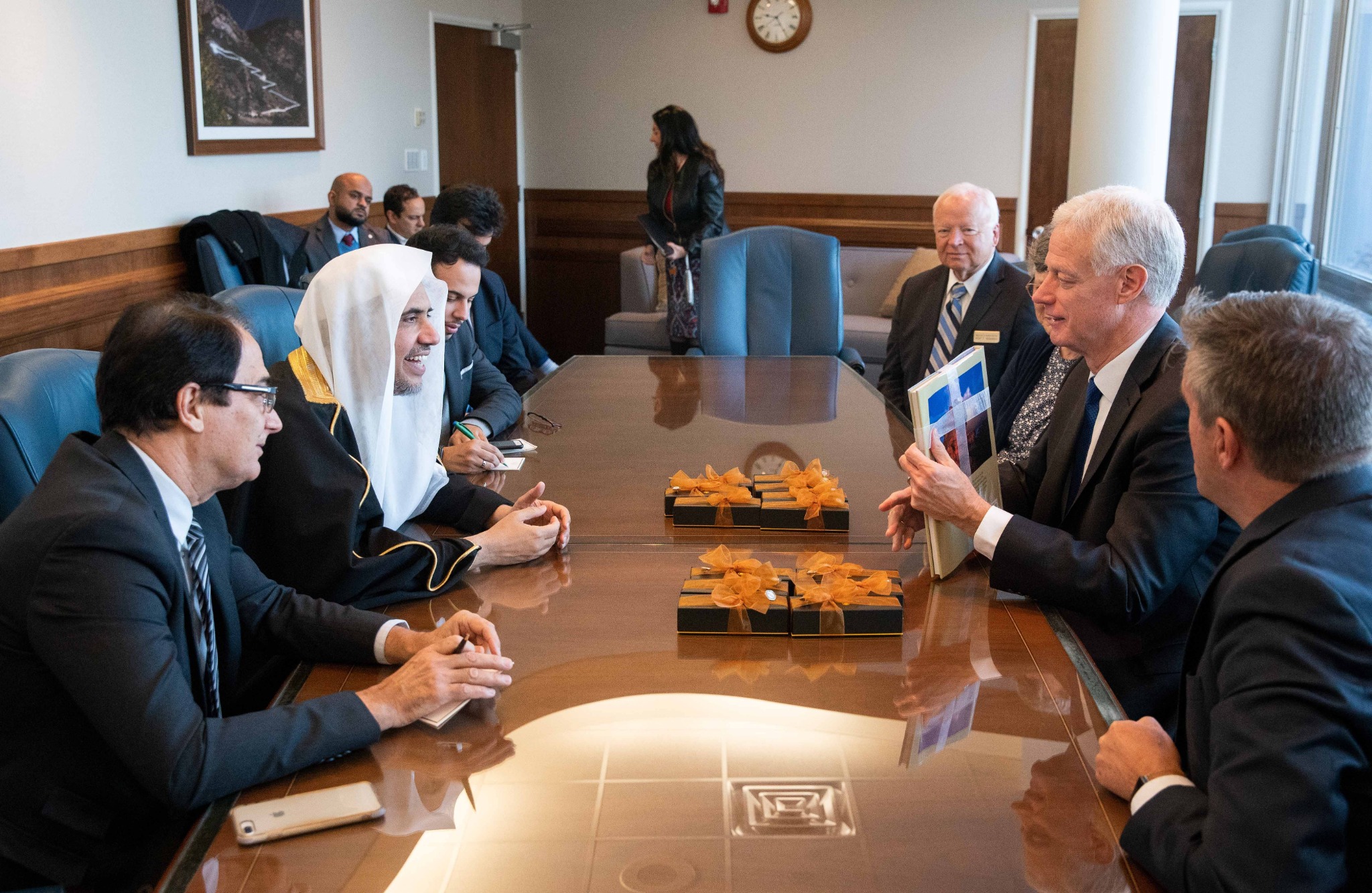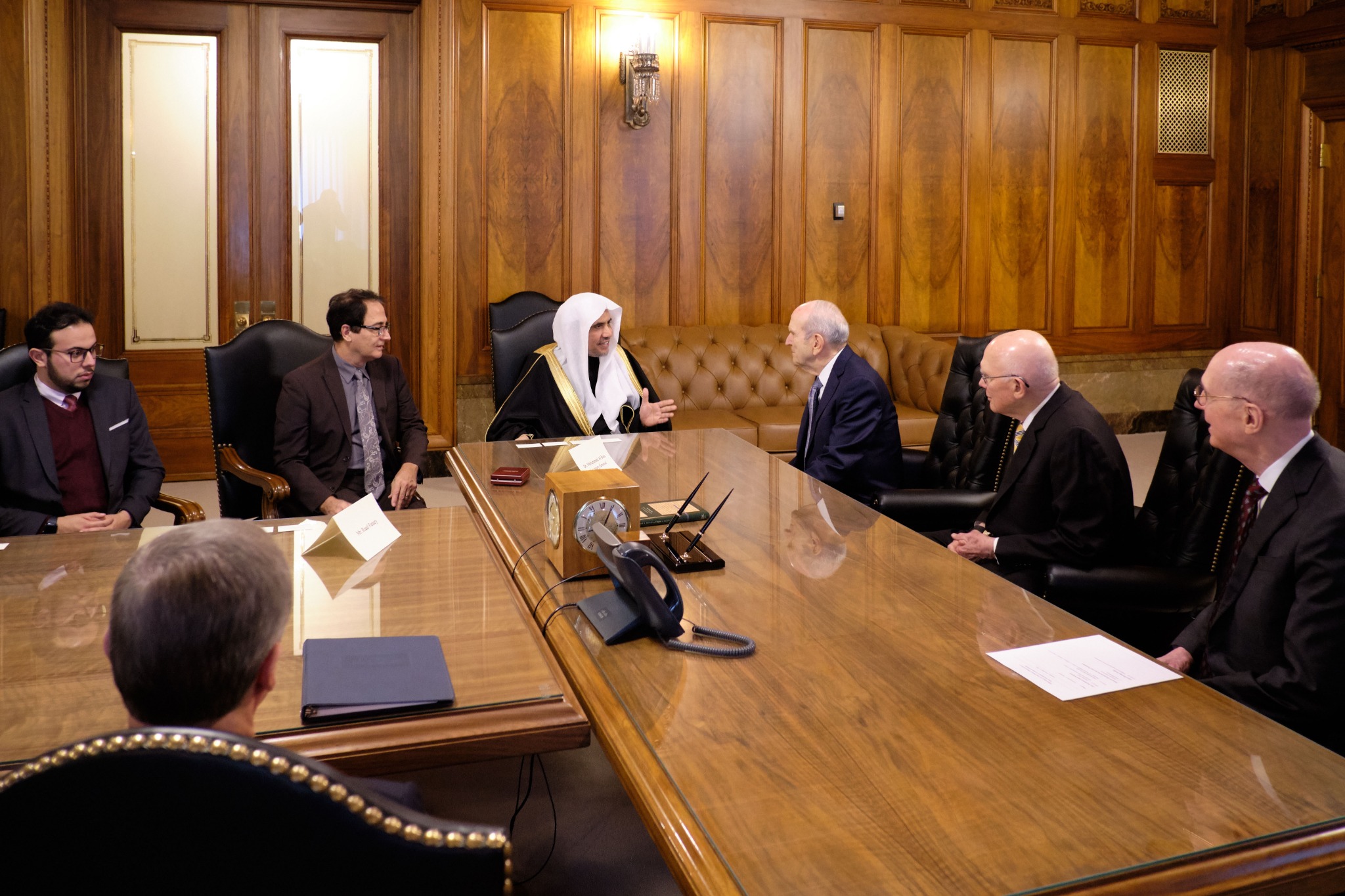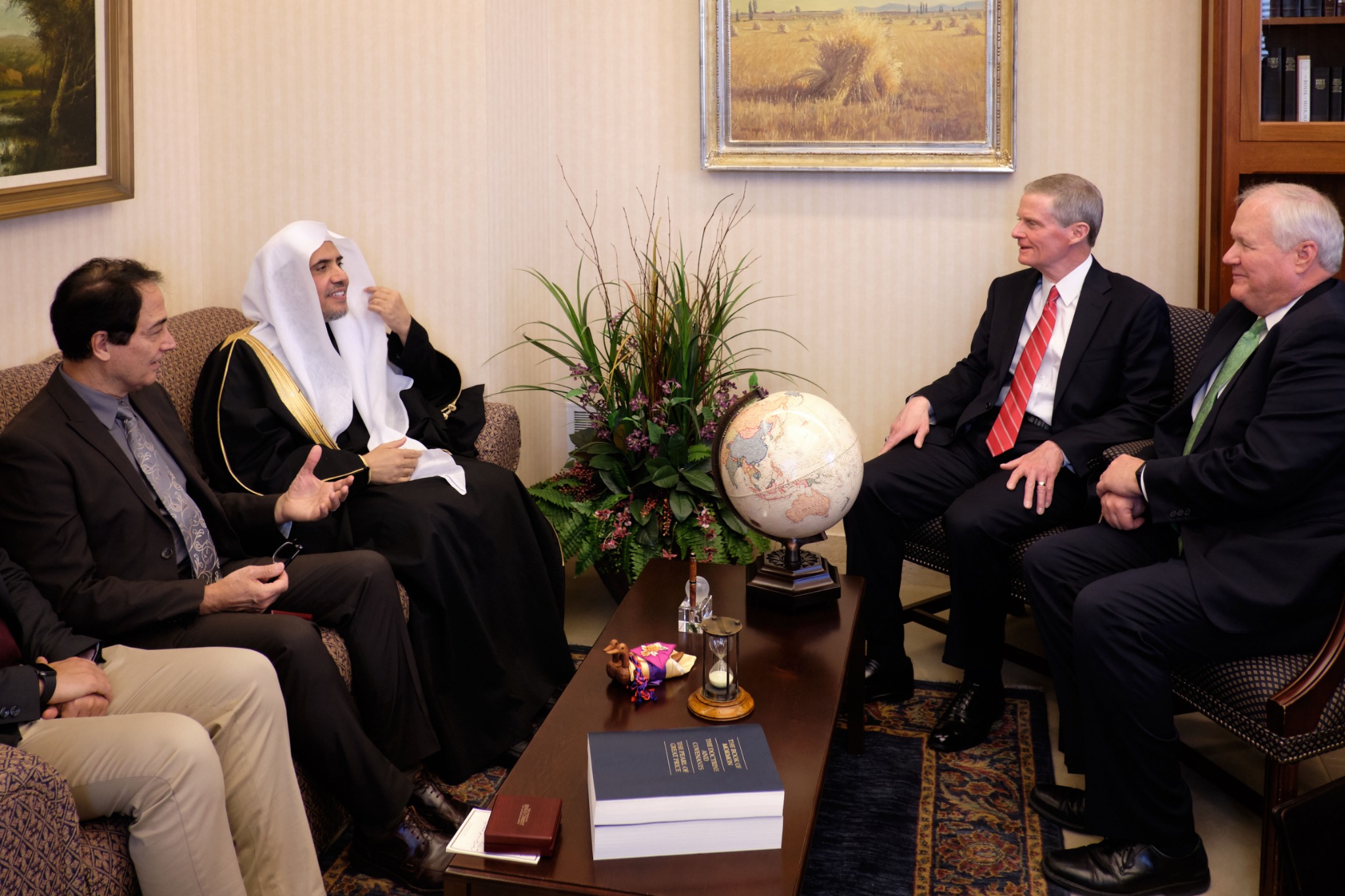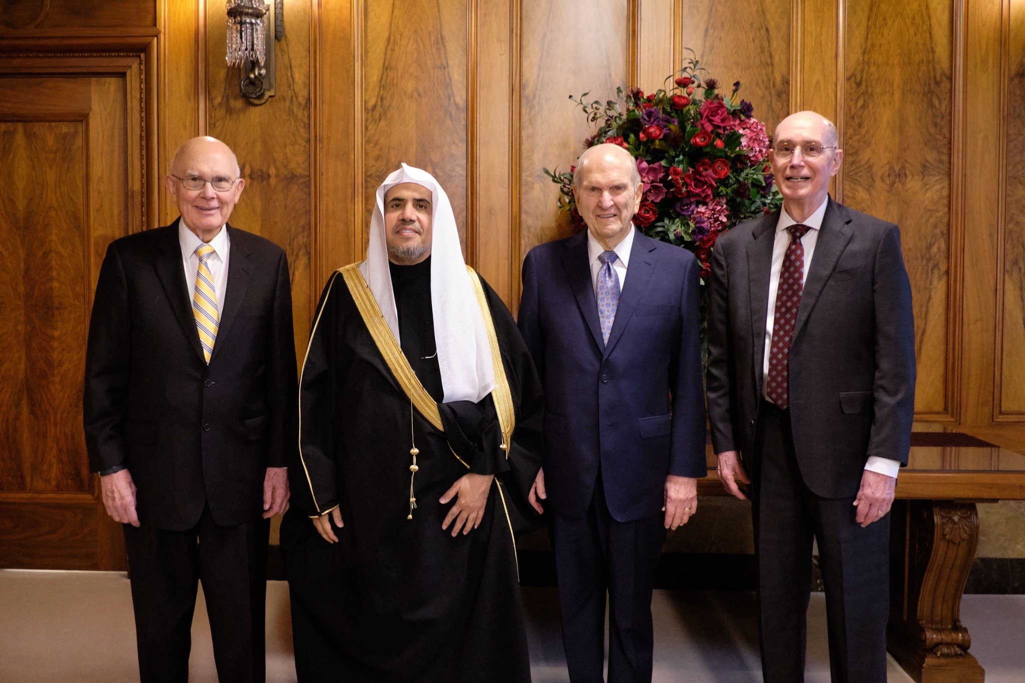 The First Presidency of The Church of Jesus Christ of Latter-day Saints met Tuesday morning with His Excellency Dr. Mohammad Abdulkarim Al-Issa, secretary-general of the Muslim World League (MWL) and president of the International Organization for Muslim Scholars, based in Mecca, Saudi Arabia. Dr. Al-Issa was joined by Abdulwahab Al-Shehri, MWL’s director of media affairs, and Raad Fanary, an interpreter.