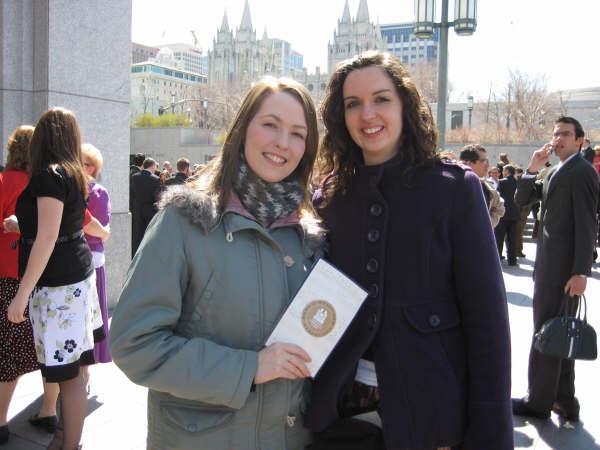 Hannah Walters and Jacqui Mount of Birmingham, England, planned for more than a year to attend Salt Lake City conference sessions in April 2009. The idea germinated at a Church youth outing where the young women talked to others who had previously made the journey. “It’s something that a lot of English people determine to do, at least one time in their lives,” explained Walters, who grew up as a member the Church.