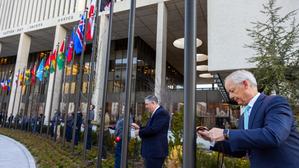 If you visit Temple Square during the April 2024 general conference (April 6–7), you can now see the flags of 91 nations on display in the plaza near the Church Office Building.