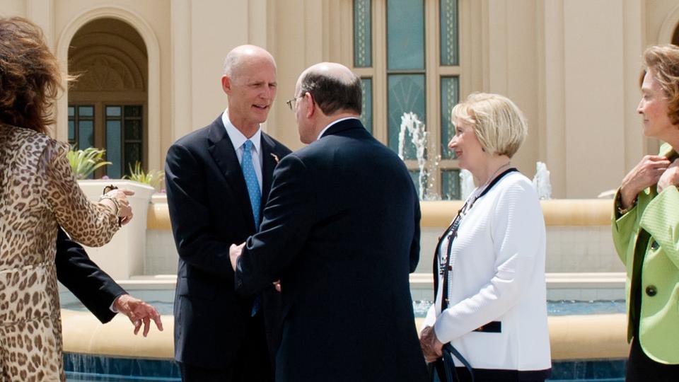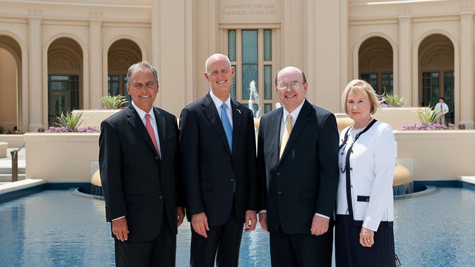 Florida Governor Rick Scott toured the new Fort Lauderdale Florida Temple of The Church of Jesus Christ of Latter-day Saints with members of Florida’s congressional delegation, American Jewish Committee leaders in south Florida and local religious leaders. Governor Scott visited the temple during an open house with Elder Quentin L. Cook of the Quorum of the Twelve Apostles and his wife, Sister Mary Cook, on Friday, 18 April, 2014.