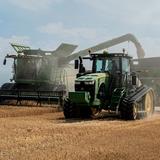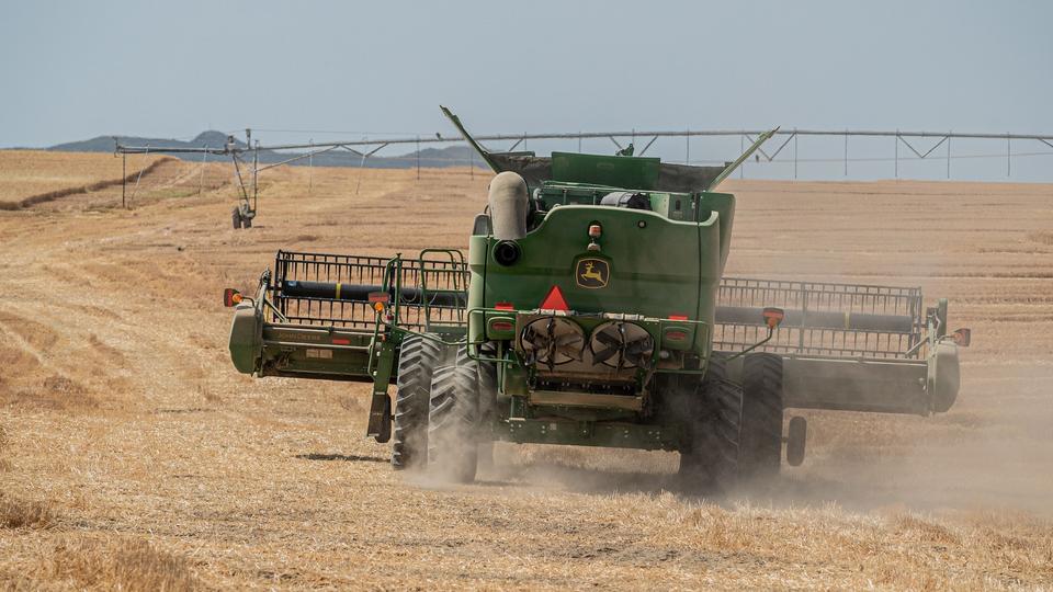 A combine harvests hard red spring wheat at a Church farm in Idaho Falls, Idaho, on Wednesday, August 26, 2020. 2020 by Intellectual Reserve, Inc. All rights reserved.Church workers and service missionaries harvested the hard red spring wheat crop on about 2,500 acres at the end of August with state-of-the-art combines and other equipment.