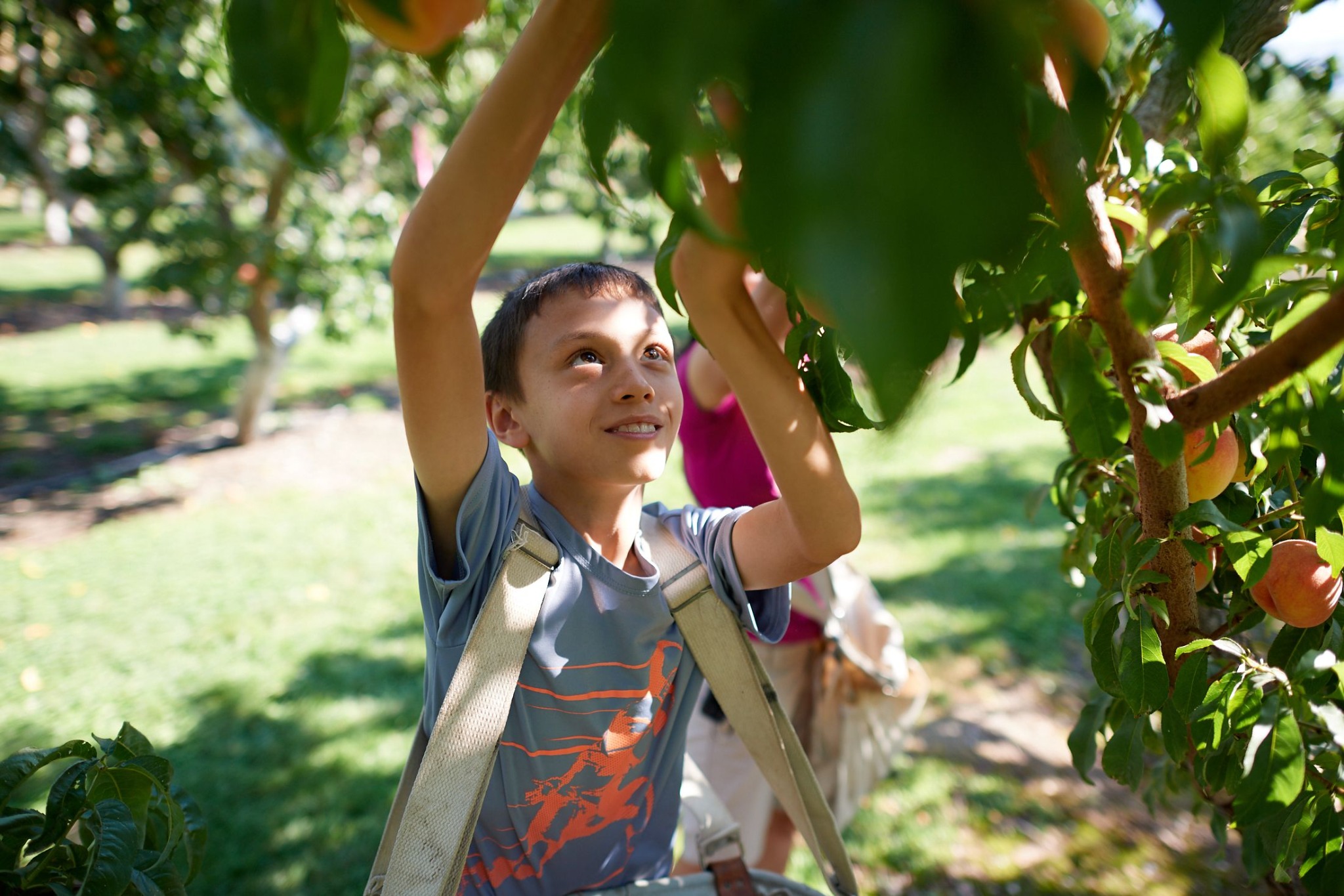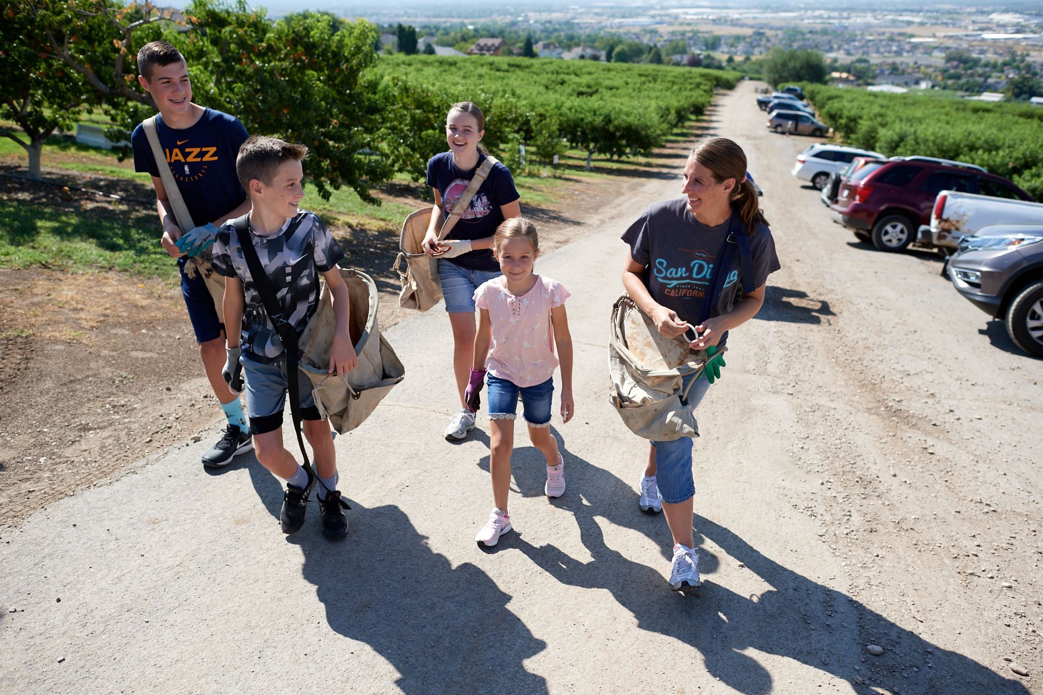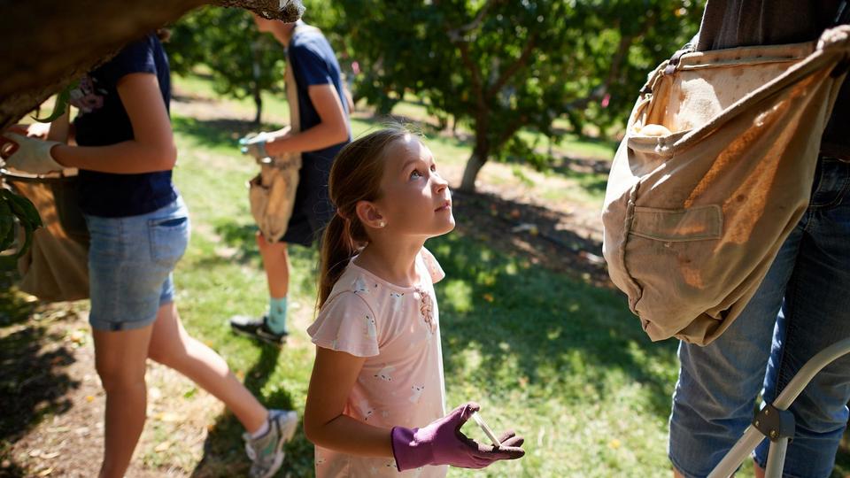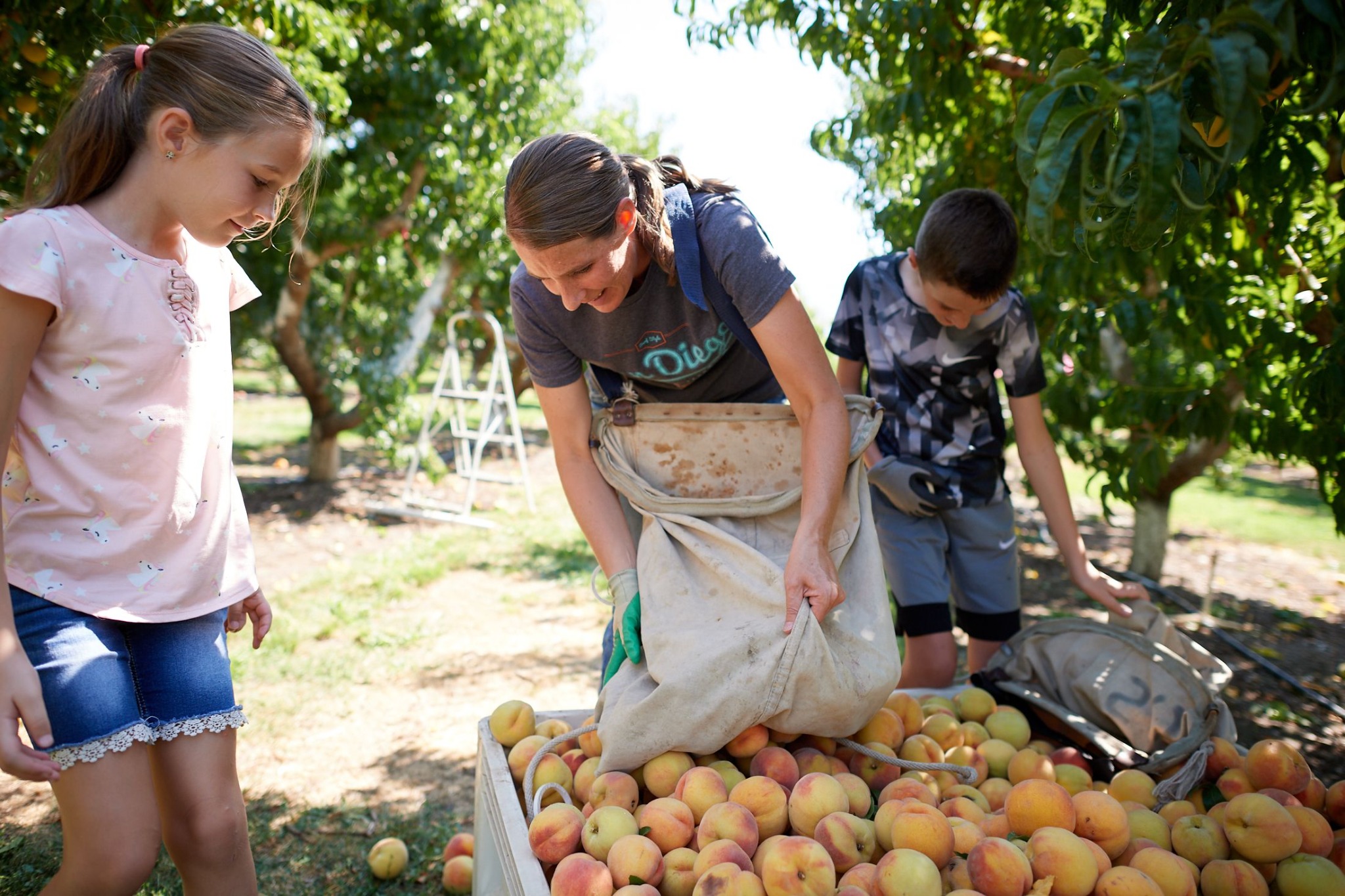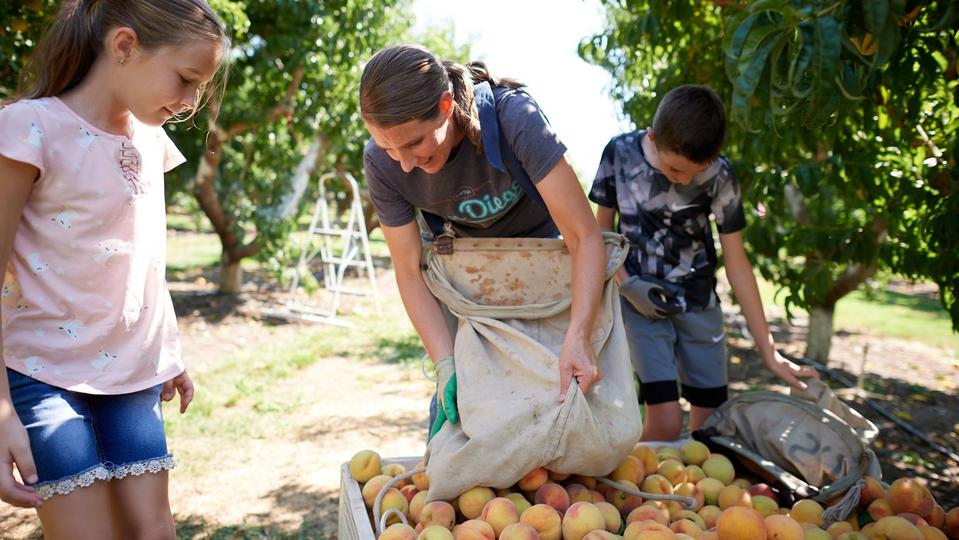 Huong Dye and her three children pick peaches at a Church farm on Tuesday, August 25, 2020. 2020 by Intellectual Reserve, Inc. All rights reserved.“It's perfect to be outdoors and to be able to enjoy the sunshine and to get a little exercise,” said Huong Dye, who brought her three children with her to pick peaches.