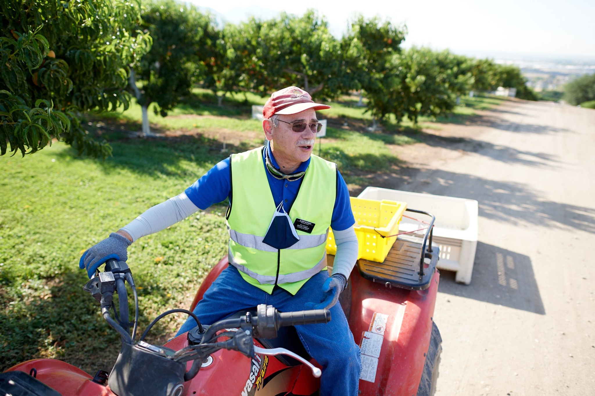 Peaches are ready for picking at a multistake peach orchard in Pleasant View, Utah, on Tuesday, August 25, 2020. 2020 by Intellectual Reserve, Inc. All rights reserved.“This is a pretty good harvest. It's not our best harvest by any measure. But, you know, we're just grateful that we have a harvest,” said Bruce Liston, who has managed the Church’s peach orchard for the past 14 years.