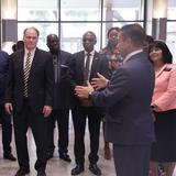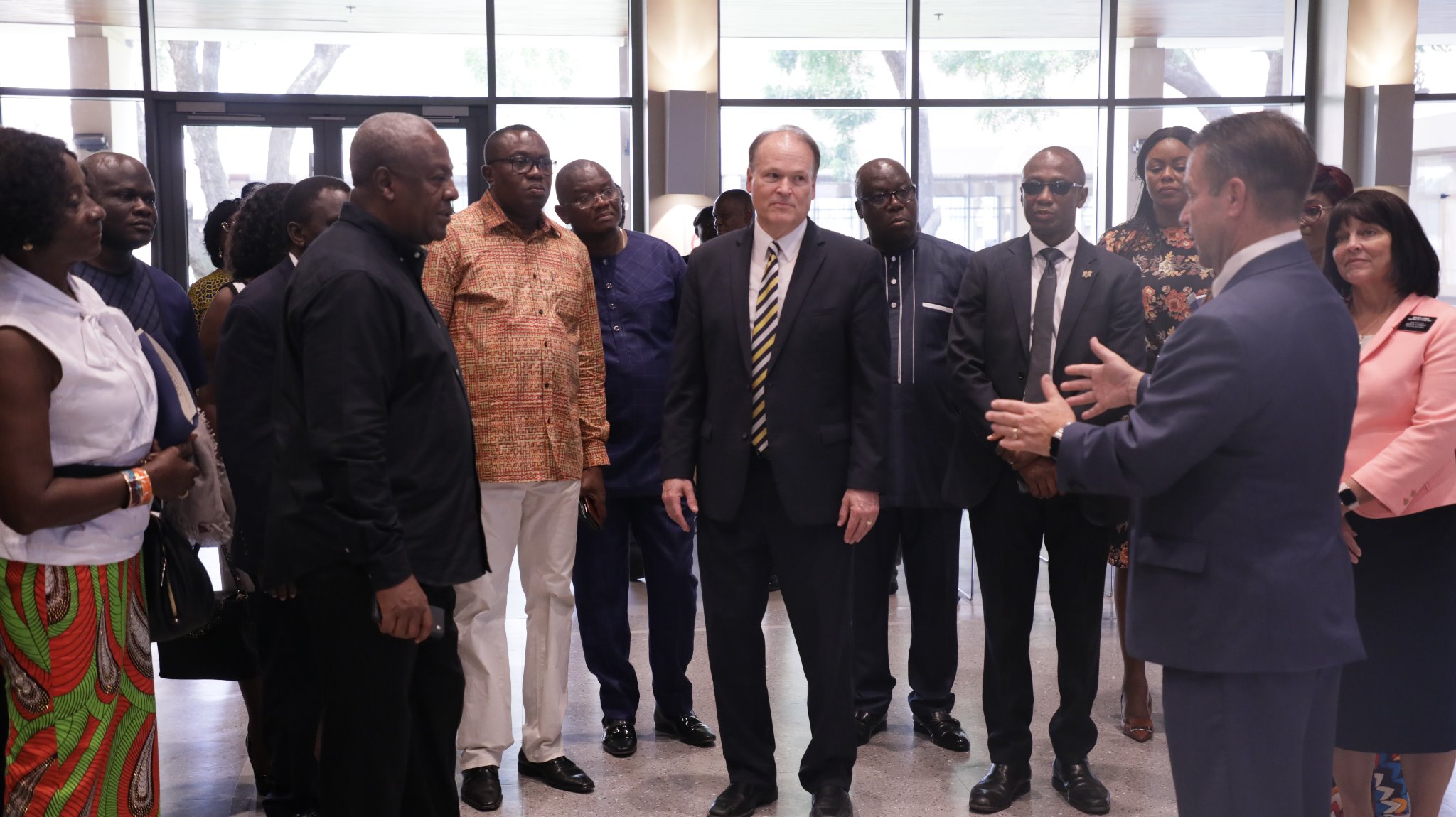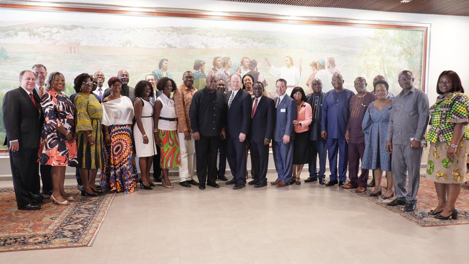 President Mahama was hosted by Elder Marcus B. Nash, president of the Africa West Area of the Church. Also, in attendance were Dr. Ekwow Spio-Garbrah, former trade minister and former Ghana ambassador to the United States; Madam Sherry Ayittey, National Democratic Congress national vice chairperson; and other government officials.