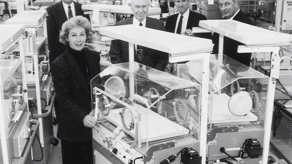 At the Deseret Industries Sort Center in 1992, Bishop Robert D. Hales (right) shows infant incubators to (left to right) President Thomas S. Monson, Sister Elaine L. Jack, Elder James E. Faust, and Elder Rex D. Pinegar. Similar incubators are still sent to various countries as part of Church humanitarian relief efforts.Due to Brother Jack’s medical career, their family lived in New York City, Boston, and even two years in Alaska, where their nine-person branch seemed more like a “twig,” Sister Jack recalled. The branch met in the Jack home, and it was “a time of testimony-strengthening” (“Ensign,” May 1987).