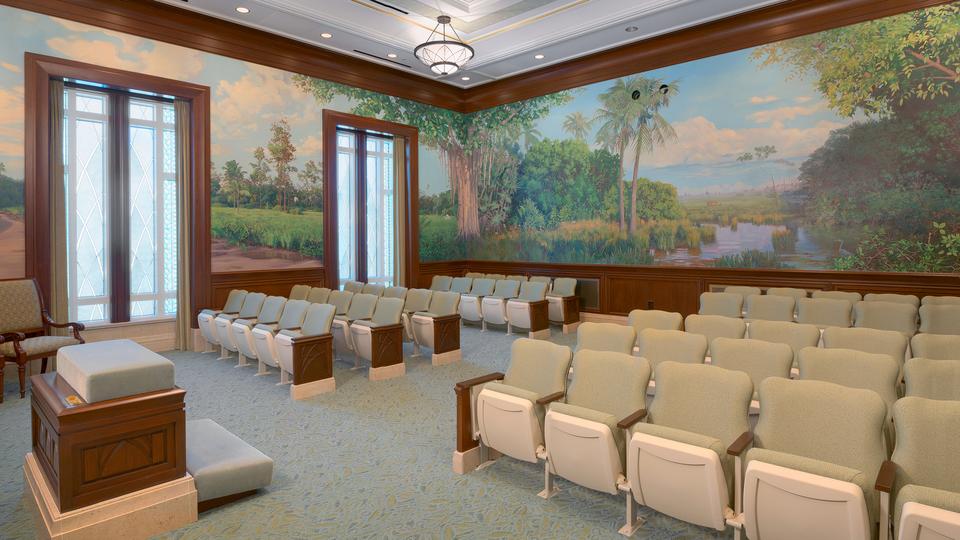 The exterior of the 30,500-square-foot temple includes colors of blue, green and earth tones reflective of the Florida environment.
