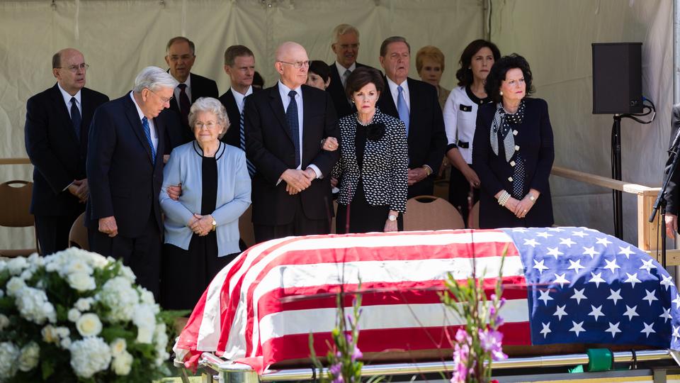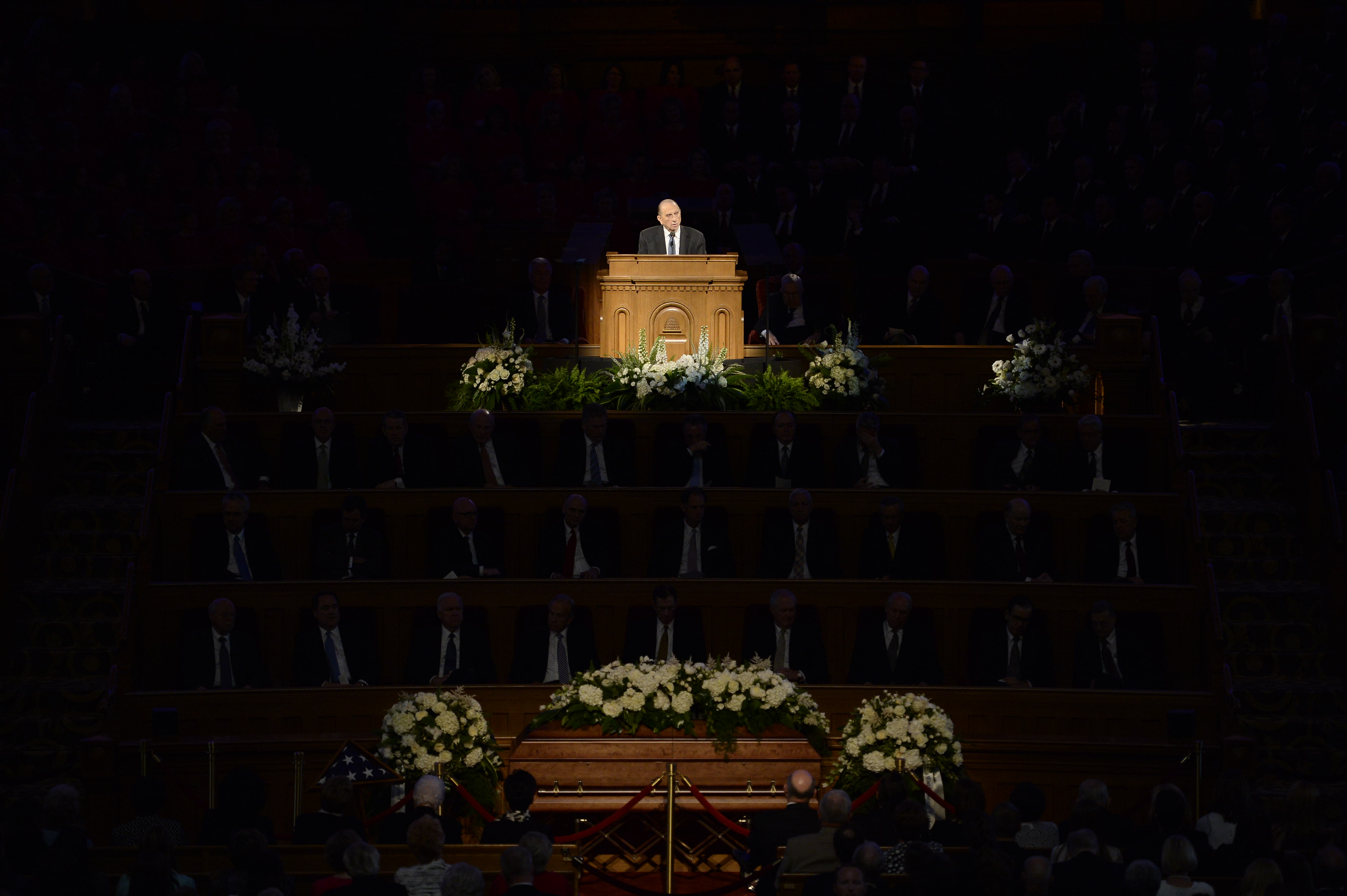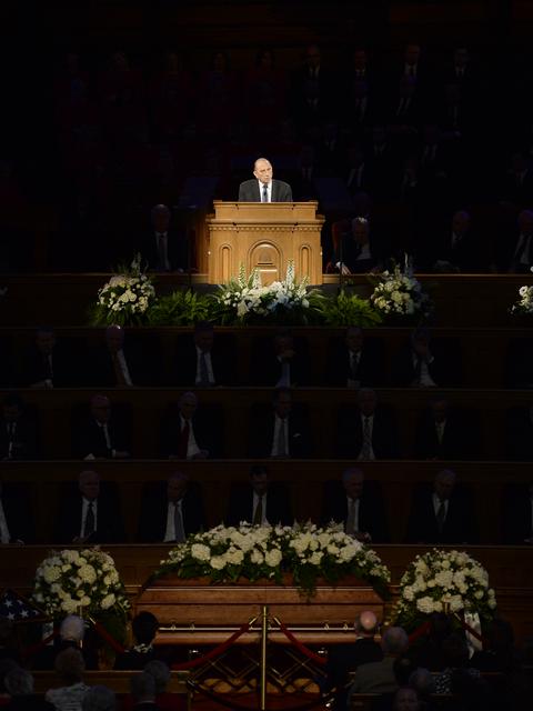Elder M. Russell Ballard and Elder Dallin H. Oaks of the Quorum of the Twelve Apostles also spoke at the funeral.