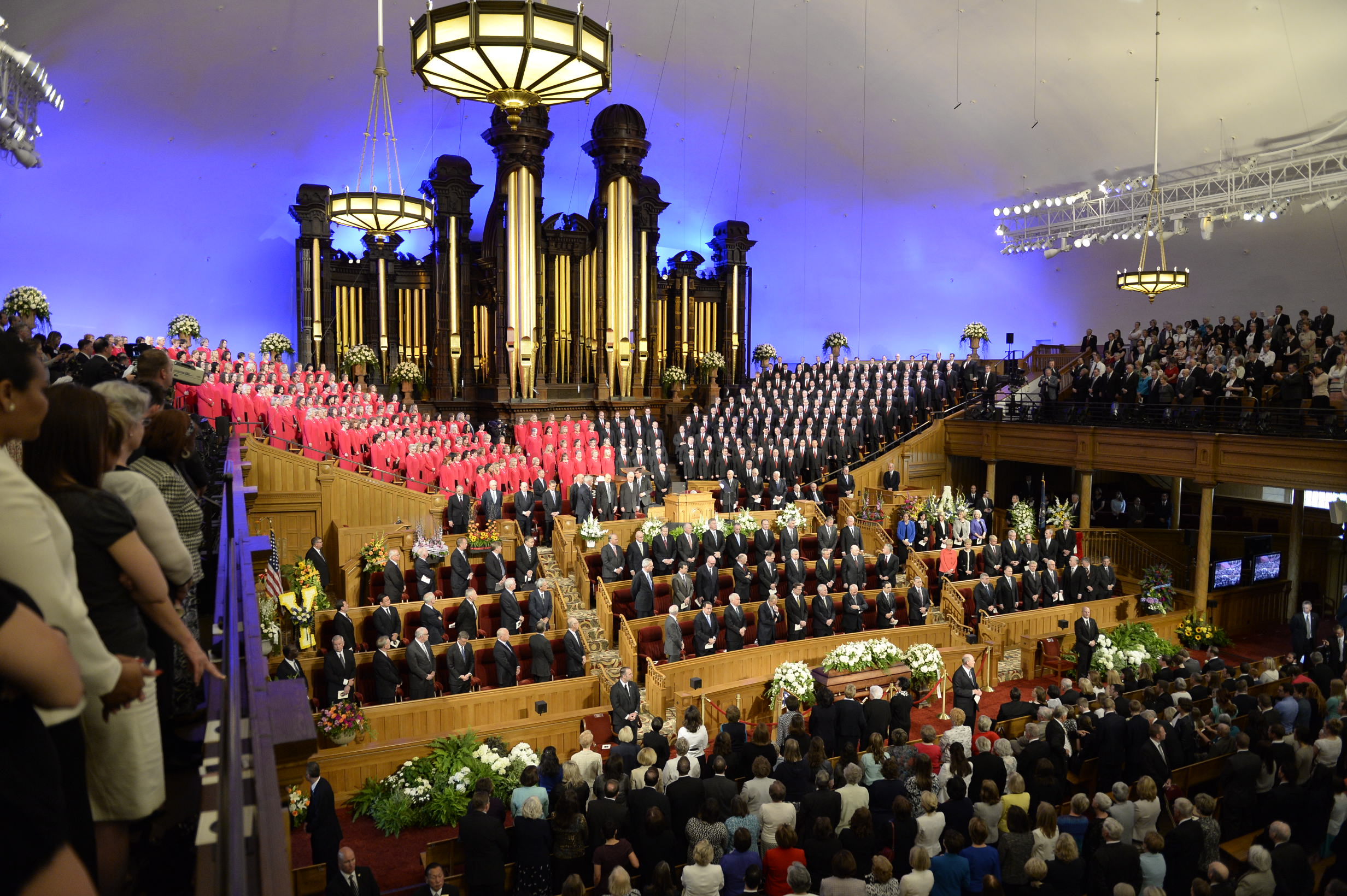 Approximately 3,000 people filled the historic Tabernacle to capacity for the funeral, while many others attended the services in the overflow seating of the nearby Assembly Hall and thousands more watched the broadcast live on LDS.org and on the Church satellite system.