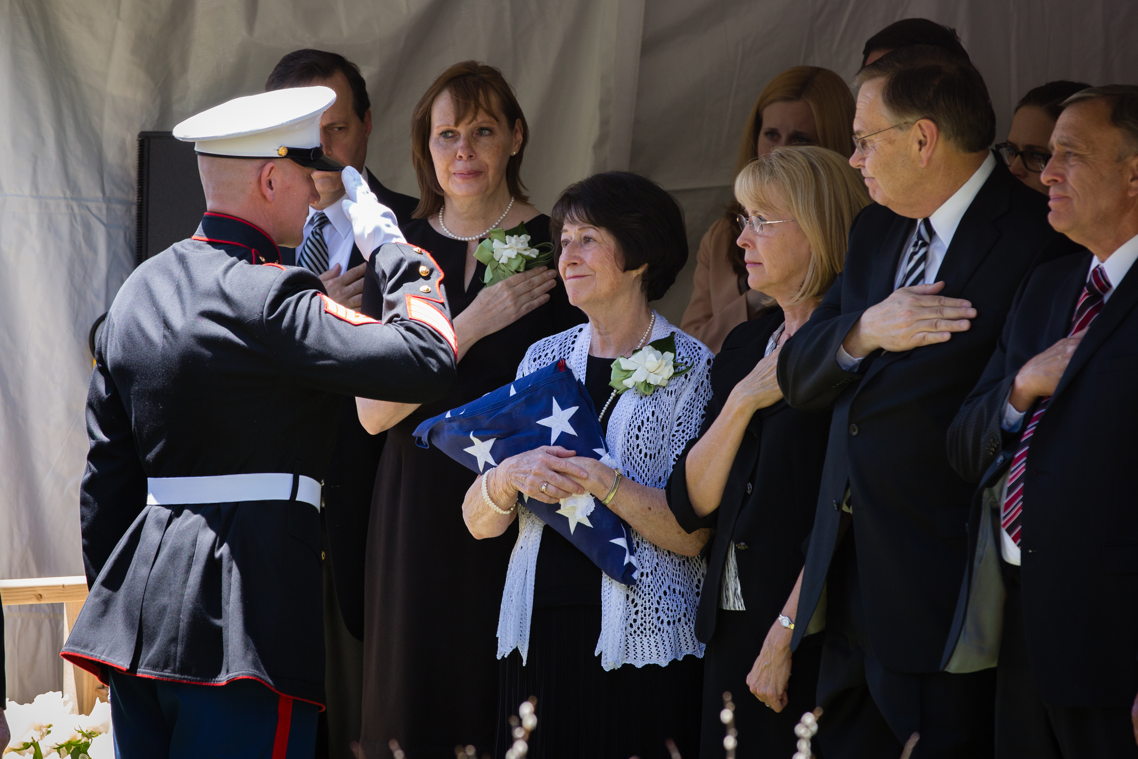 Part of the services included a military honor guard that reverently removed the American flag from Elder Perry's casket, folded and presented it to Sister Perry. "Taps" were played and a 21-gun salute was fired for his military service as a Marine in World War II. He is survived by his wife, Barbara, two of his children and many grandchildren and great-grandchildren.