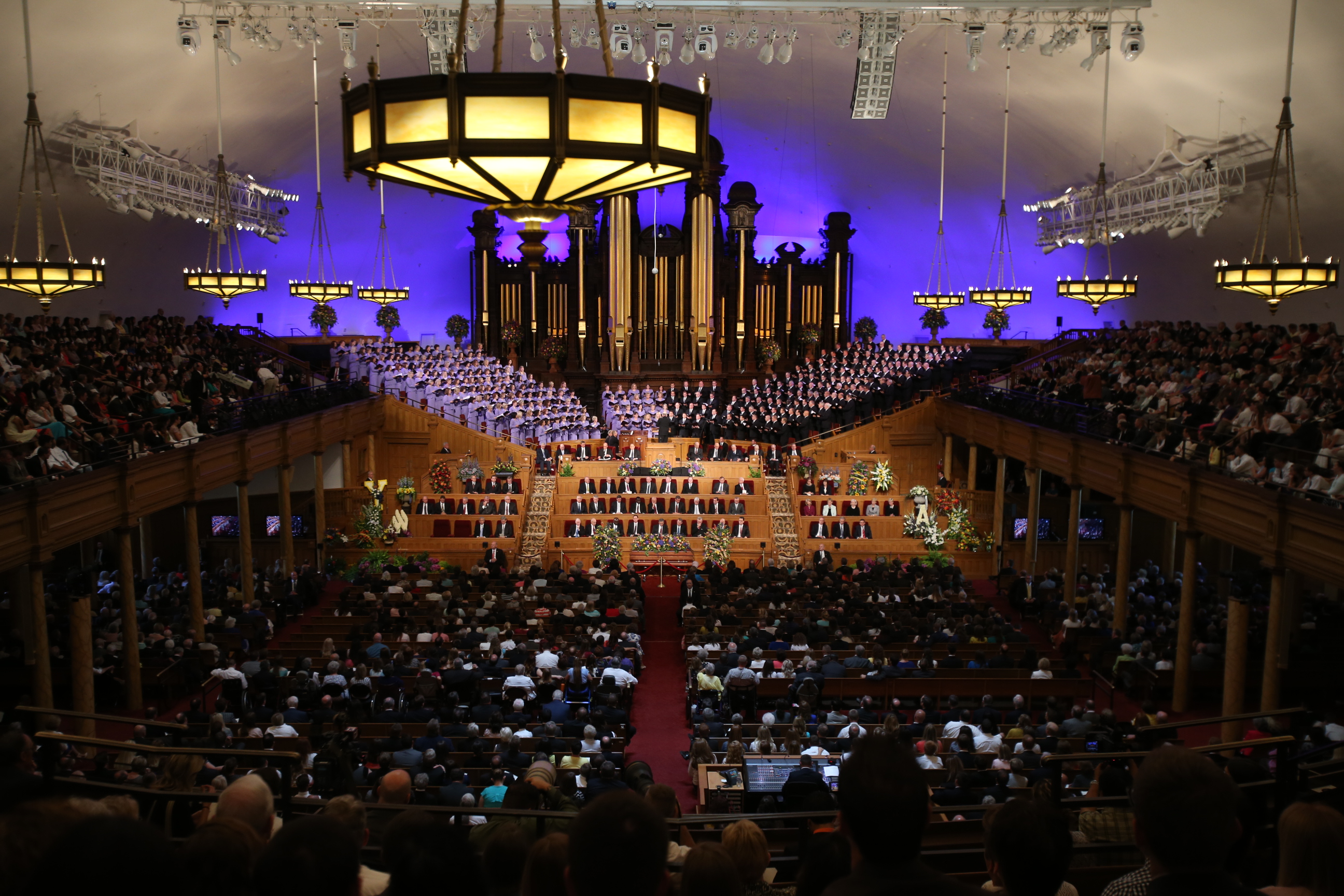 Thousands filled the Tabernacle and other locations on Temple Square in Salt Lake City on Friday, July 10, 2015, for the funeral of President Boyd K. Packer of the Quorum of the Twelve Apostles of The Church of Jesus Christ of Latter-day Saints. Thousands more around the world watched a live broadcast of the service in English, Spanish and Portuguese. President Packer died at home on July 3 at the age of 90 after serving as a general authority of the Church for more than 50 years.