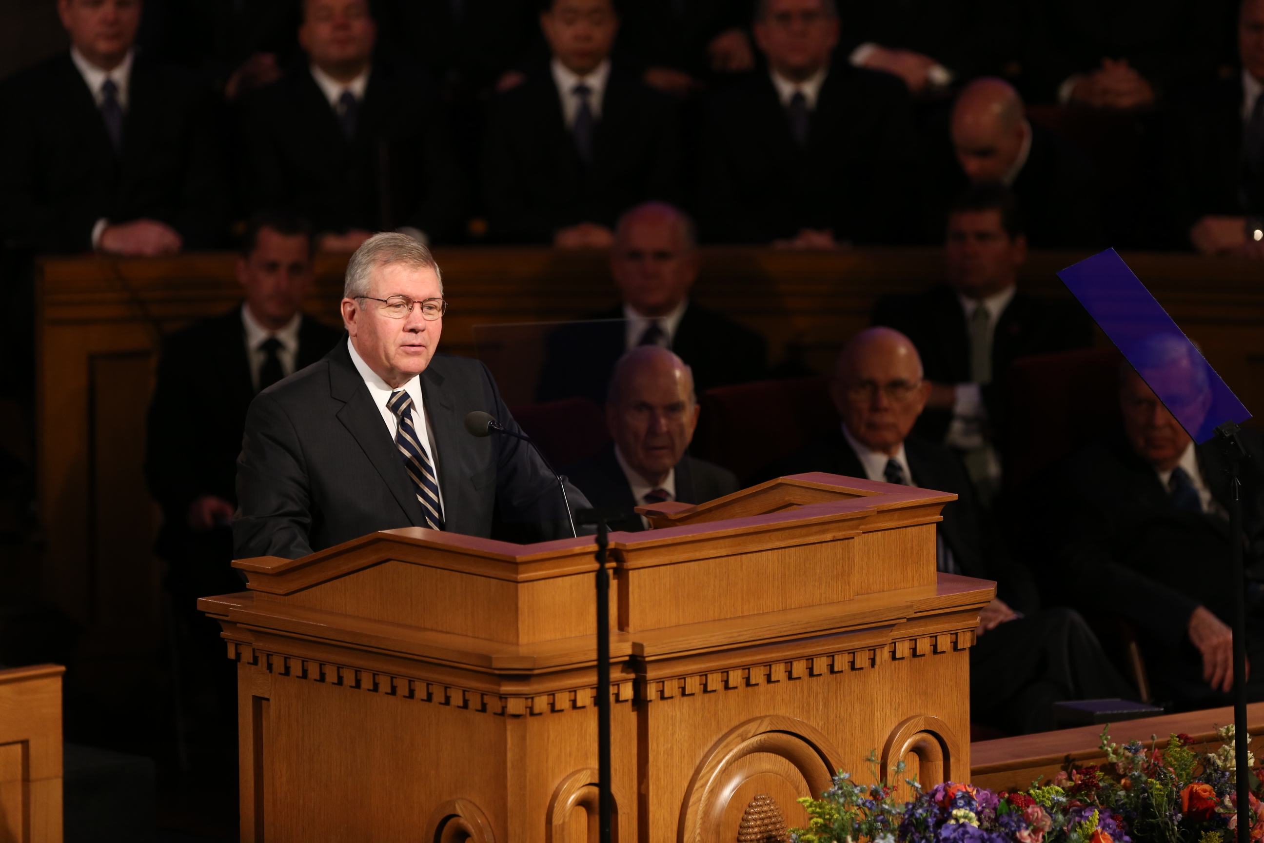 Church President Thomas S. Monson, President Packer's son Elder Allan F. Packer of the Seventy, Elder M. Russell Ballard of the Quorum of the Twelve Apostles and Elder Dallin H. Oaks of the Quorum of the Twelve Apostles each spoke at the service.