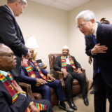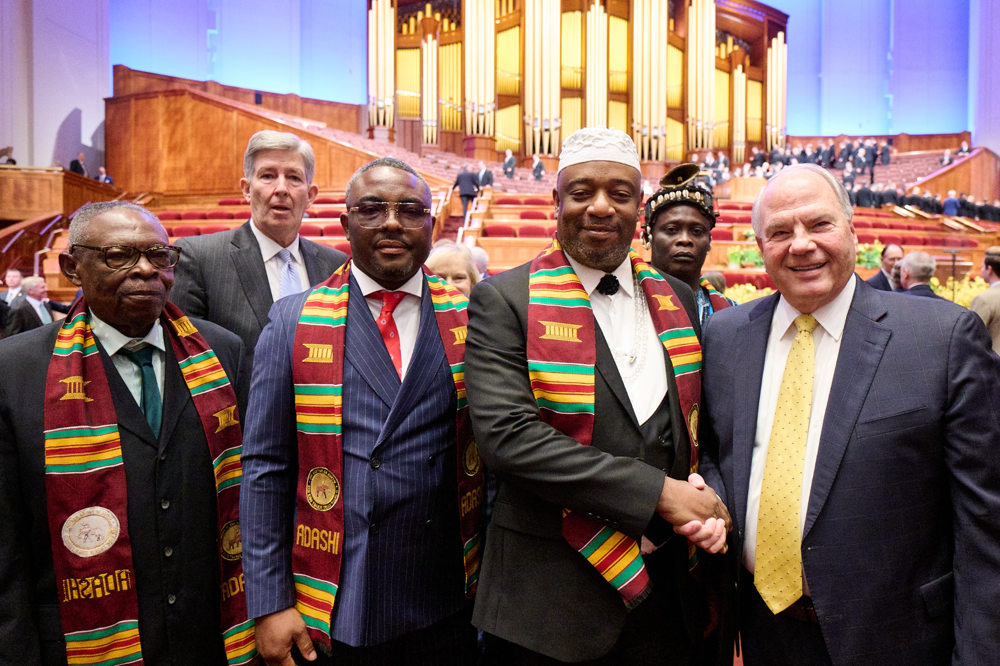 The seeds for the idea of the king coming to Salt Lake were sown in late February when he met with Elder D. Todd Christofferson of the Quorum of the Twelve Apostles and other prominent Church leaders at Church offices near the Accra Ghana Temple. Elder S. Gifford Nielsen, Africa West Area President and General Authority Seventy, was also present at this meeting.