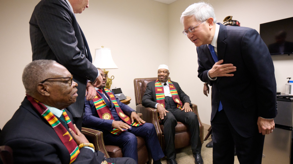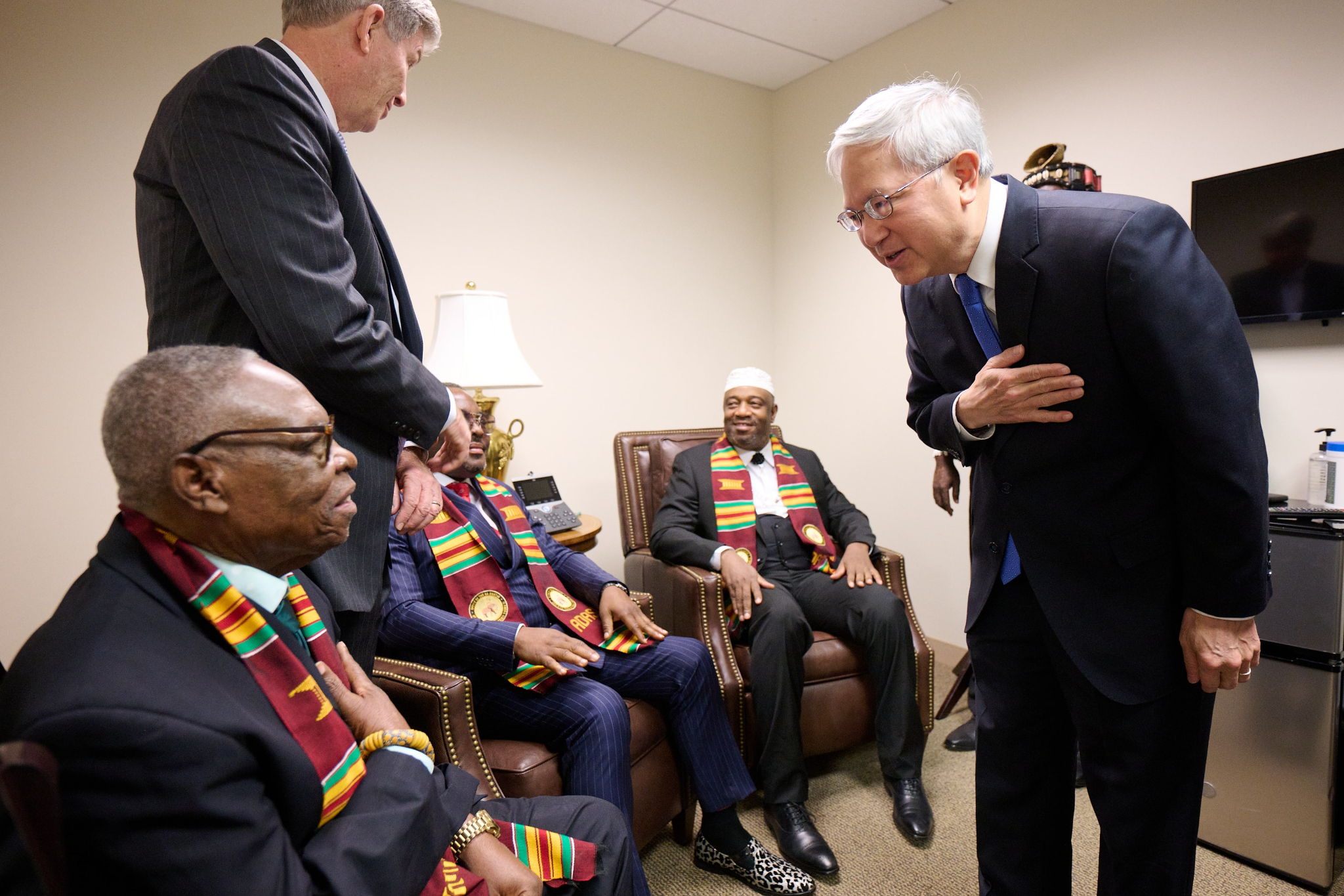 On Monday, King Tackie Teiko Tsuru traveled to Brigham Young University in Provo to meet with faculty and students. Despite the unusually cold and snowy weather, he was grateful for the opportunity.