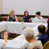 “I have written a song. It is called ‘My Life Is Like a Mystery Quilt,’ and I would like to sing it for you now. Just kidding, I didn’t do that,” Sister Runia told the women, evoking laughter from the audience.