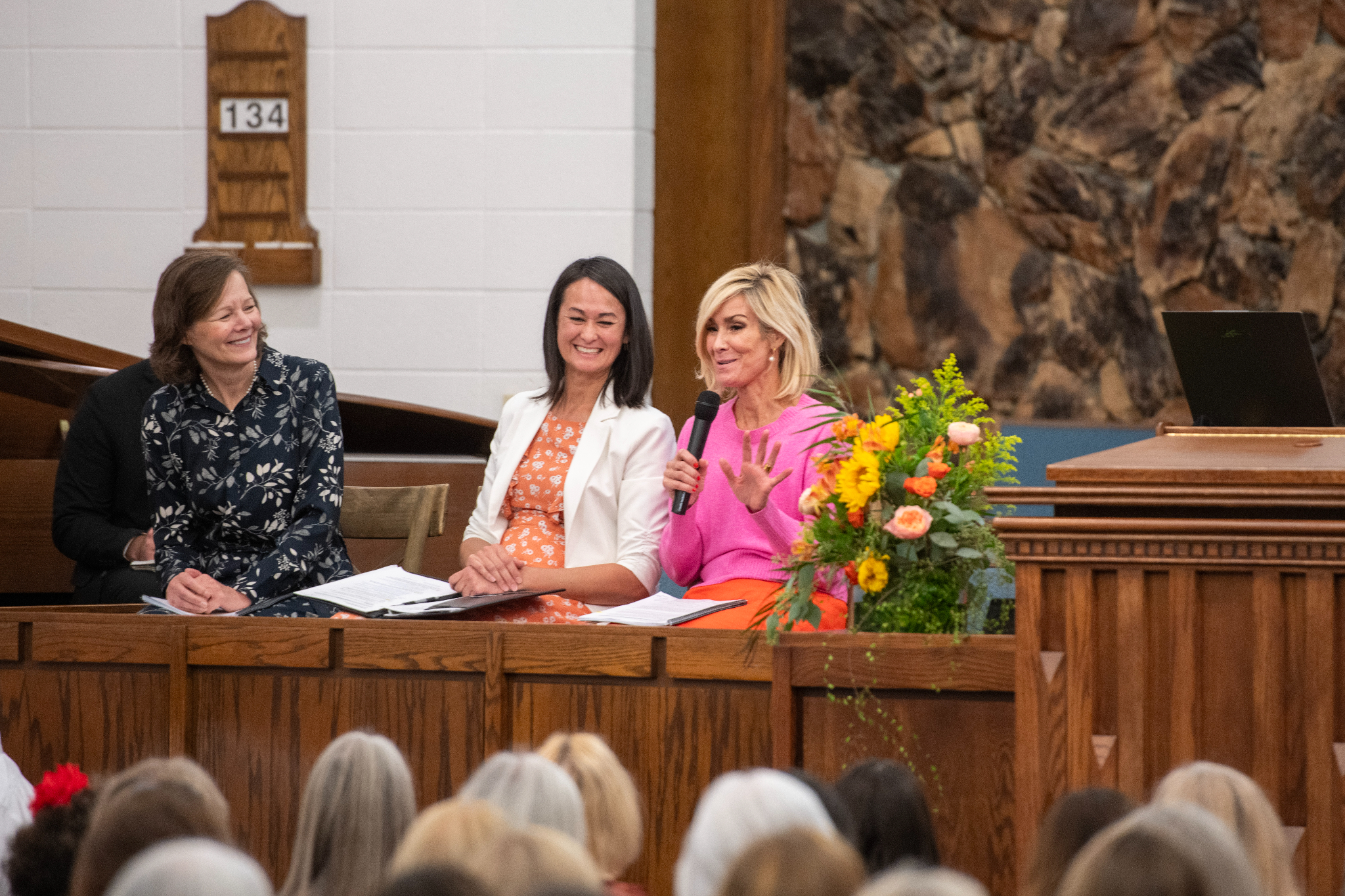 On Friday night, all three Church leaders spoke to members of the Relief Society in San Diego at a meeting involving multiple congregations at a Church meetinghouse.