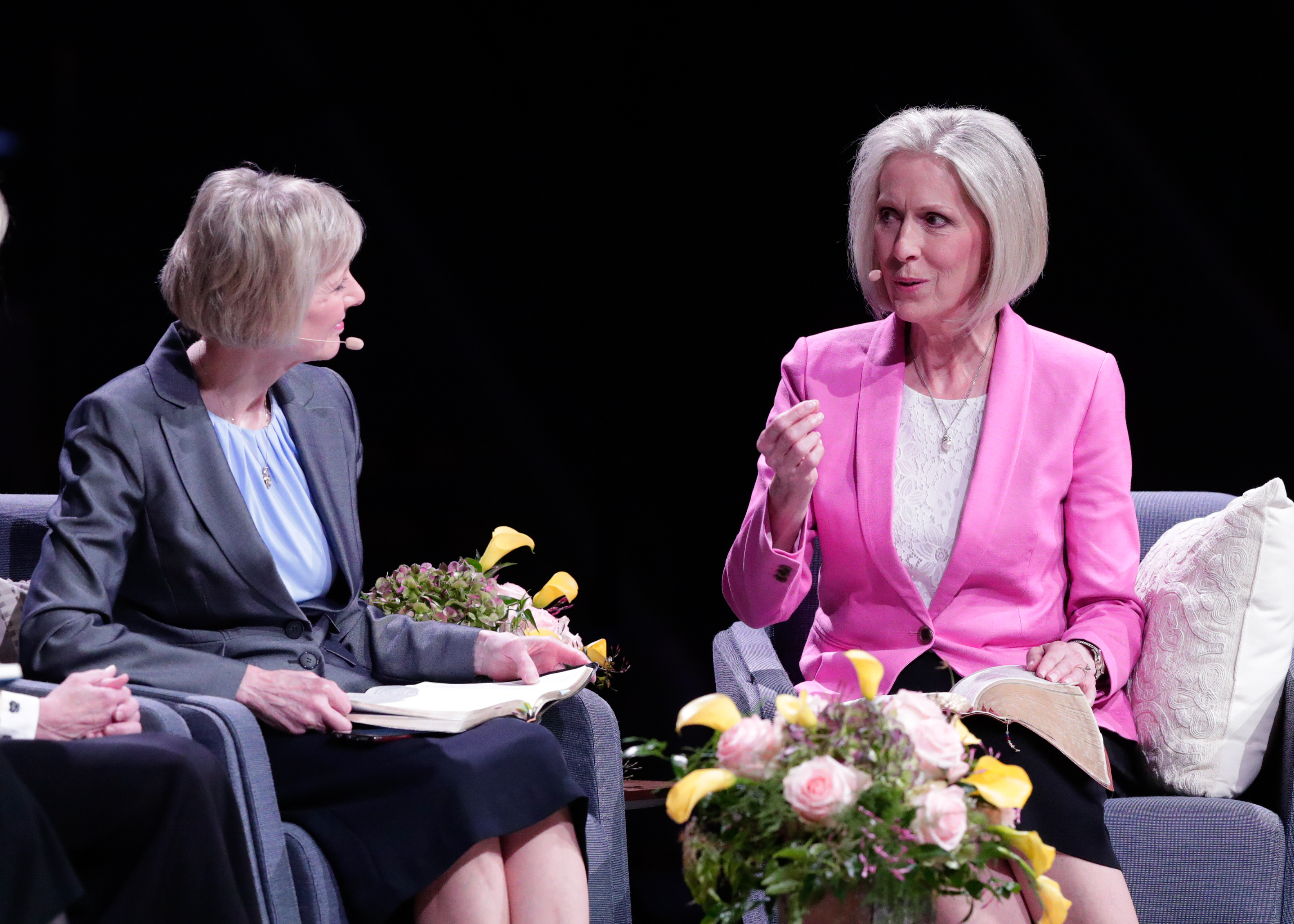 Sister Jean B. Bingham, Relief Society general president; Sister Bonnie H. Cordon, Young Women general president; and Sister Joy D. Jones, Primary general president, fielded questions from women across the globe. The panel discussion was moderated by Sister Sheri Dew, former second counselor in the Relief Society general presidency.