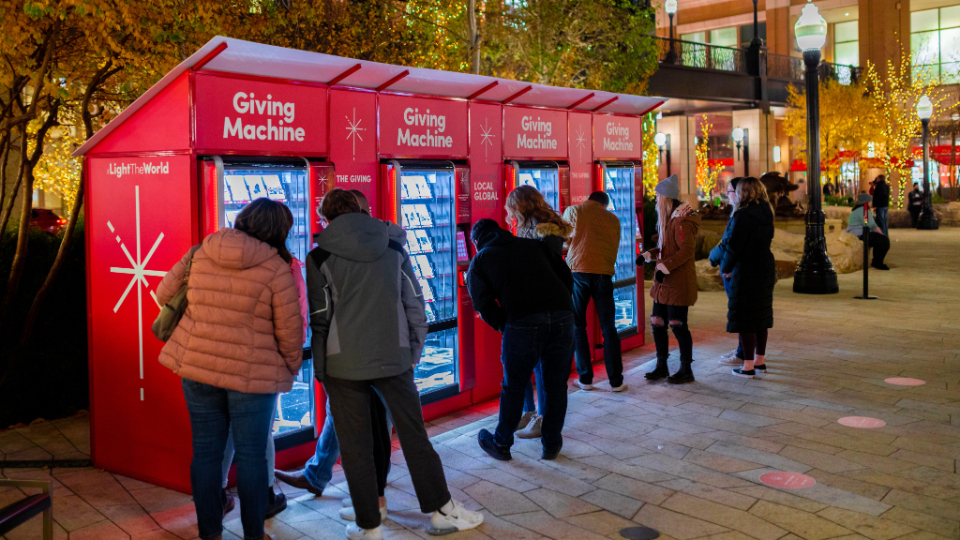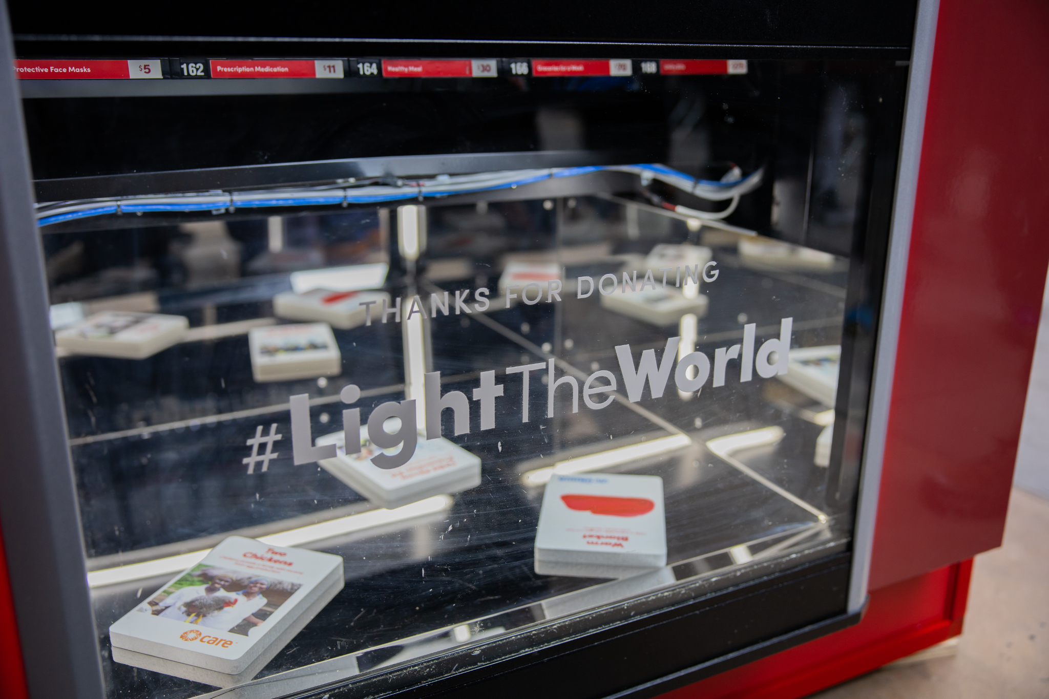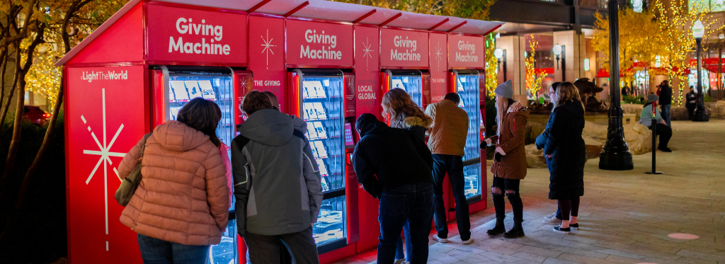 Returning this year are the popular Light the World Giving Machines. These giving-focused vending machines offer a unique and memorable way to share light by serving and caring for others around the world. Giving Machines include items such as groceries, fresh water, child vaccines, beds, hygiene kits, farming equipment, medical care, job training, educational supplies, beehives and livestock.
