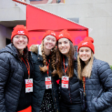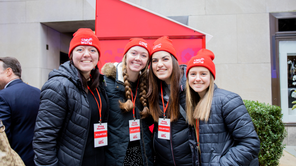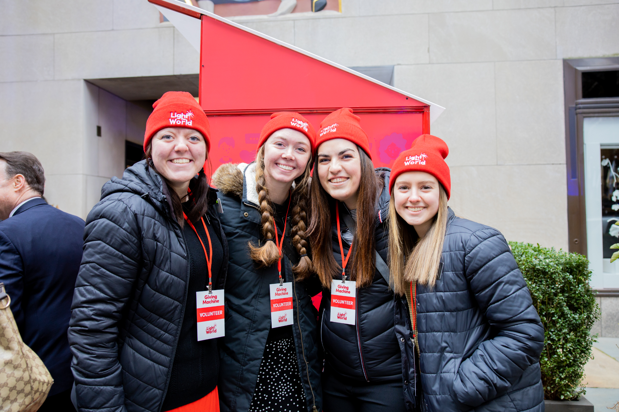 Sister missionaries of the Church of Jesus Christ volunteer at the opening of the Light the World Giving Machines at New York City's Rockefeller Center on Tuesday, November 30, 2021. 2021 by Intellectual Reserve, Inc. All rights reserved.