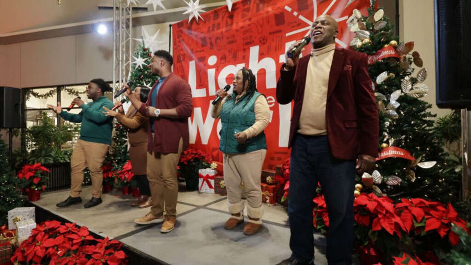 “Let’s light the world!” sang the Bonner Family from a stage full of wrapped presents, garlands and decorated lighted Christmas trees. “The time is now to walk with Him in goodness,” they sang.