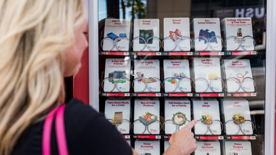Donors choose items at the Giving Machine in Las Vegas, Nevada, on November 3, 2021. 2021 by Intellectual Reserve, Inc. All rights reserved.