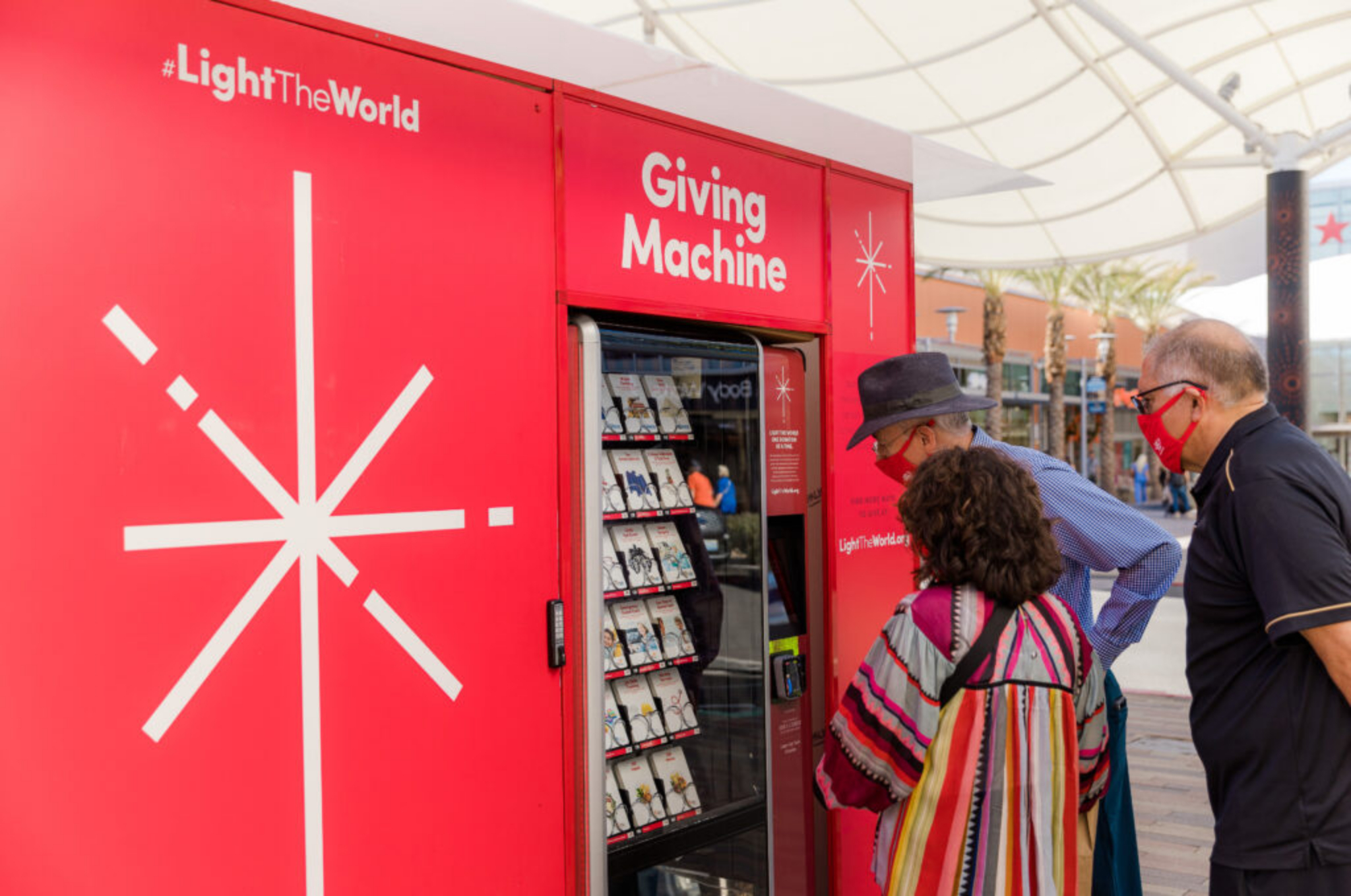 Over the last several weeks, the machines have been opening throughout the United States. As of December 1, all ten locations for the machines are accepting donations. They will continue to take donations through January 1, 2022. For more details about sponsors or locations and how to donate without visiting a Giving Machine, visit churchofjesuschrist.org/comeuntochrist/light-the-world-2021/giving-machines.