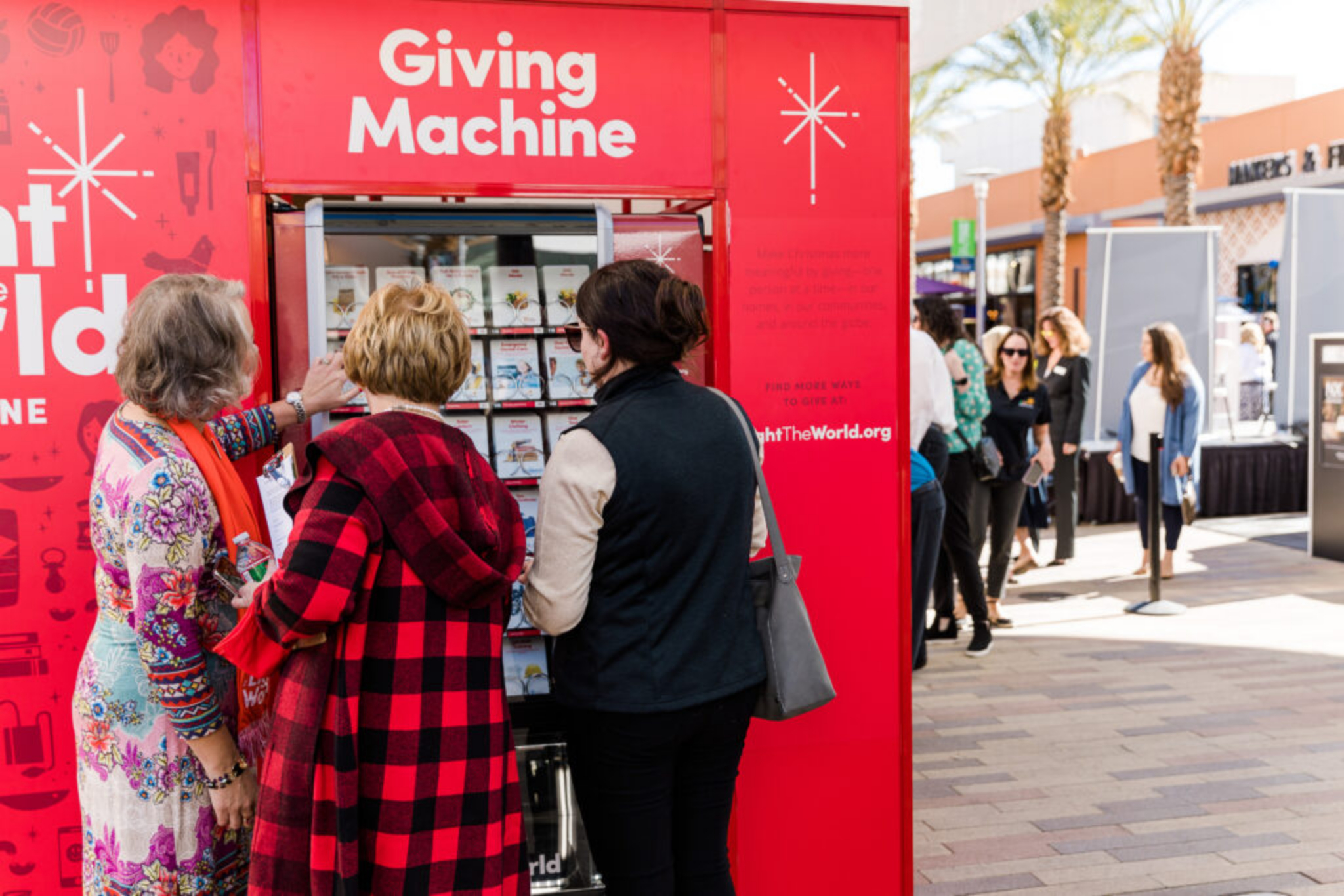 Local organizer Fran Lowder joked that they were having a friendly competition with the nine other locations around the U.S., and she hopes Arizonans help the Gilbert location get the most donations. “We are excited for these local agencies to have their needs met. They have specifically picked and chosen items to go into the Giving Machines that serve their needs.”