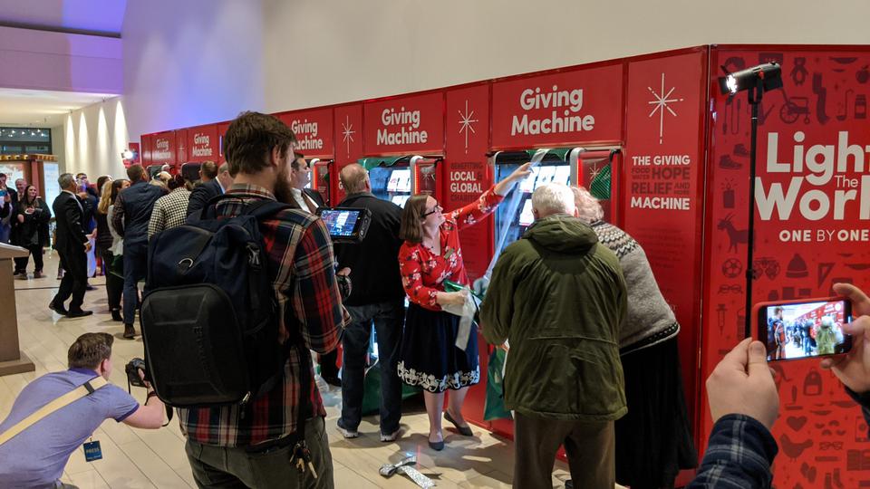 The machines made it easy to donate to global charities such as UNICEF, Church World Service, WaterAid, Water For People and International Medical Corps.
