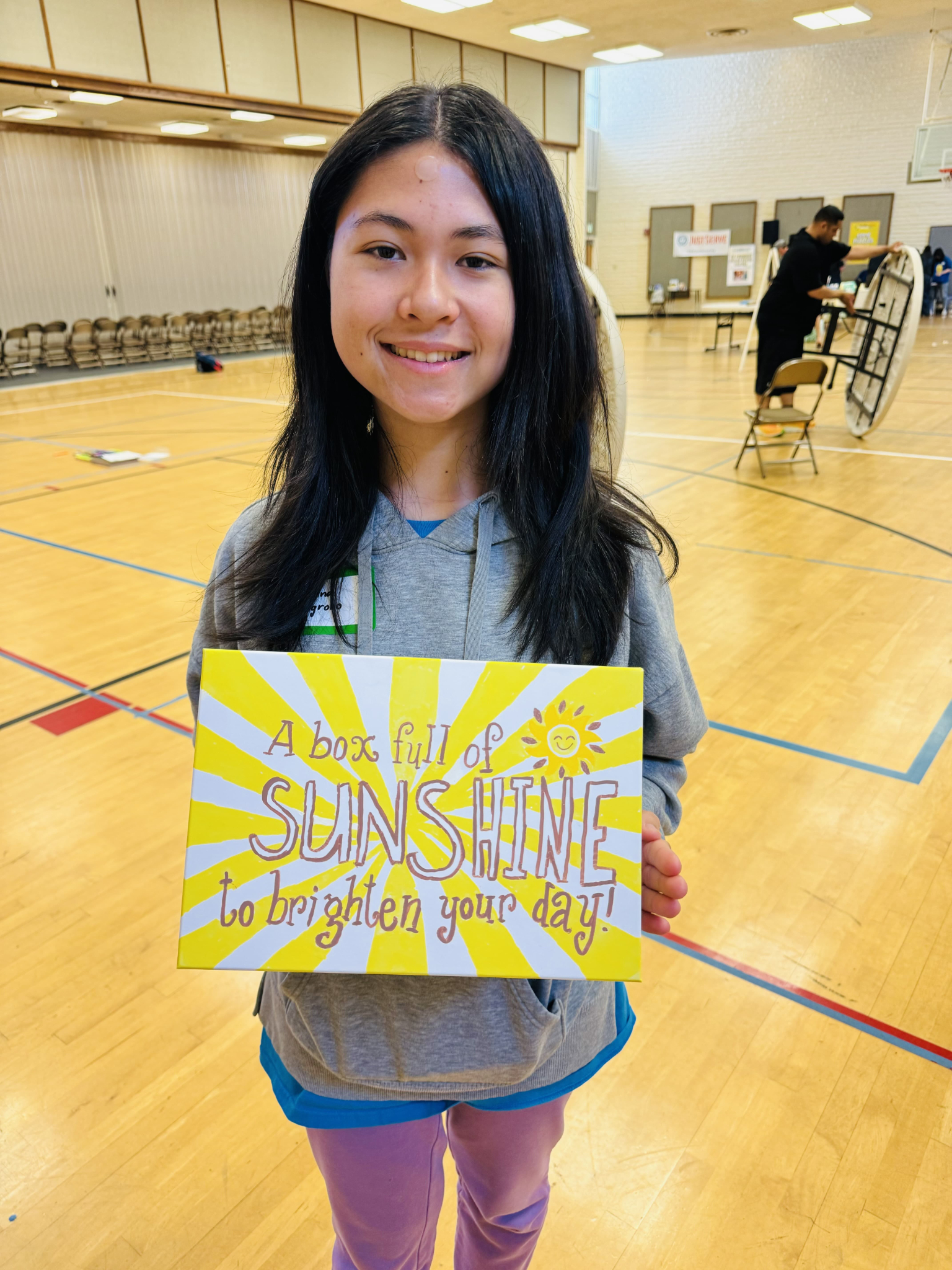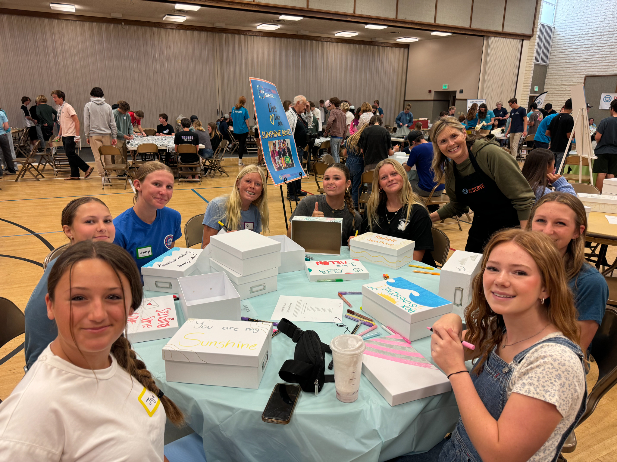 The youth adorned plain white boxes with vibrant pictures and uplifting messages, transforming them into “Sunshine boxes.” These thoughtful containers will find their way to the Live Like JoJo foundation, where they will be filled with toys and comforting items for children in hospitals. Gwen T., one of the creative minds behind these boxes, said the service opportunity was “a positive way to spend your weekend. This box might brighten someone’s day.”